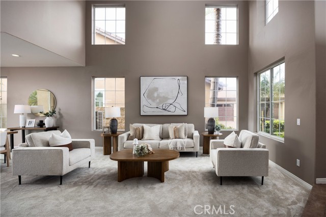 Situated on a premium view lot within the prestigious gated community of Parkridge, this exceptional residence offers the perfect blend of privacy, elegance, and breathtaking scenery. Tucked away on a quiet cul-de-sac and just moments from the community pool and amenities, the home delivers a rare sense of serenity that is truly hard to find. From the moment you arrive, the panoramic, unobstructed views captivate. The upstairs primary suite provides a remarkable vantage point stretching all the way to Catalina Island, with sweeping vistas of city lights, rolling mountains, and the sparkling ocean beyond. Nightly Disneyland fireworks can even be enjoyed from the primary suite windows, creating a setting that inspires both awe and tranquility. Step through the double front doors into a grand entry with soaring ceilings and expansive windows that flood the interior with natural light. The spacious living room offers an inviting space to gather, while the formal dining room, framed by elegant French doors, seamlessly connects indoor and outdoor entertaining. The beautifully upgraded kitchen serves as the heart of the home, featuring granite countertops, crisp white cabinetry, a generous center island, and a picturesque window overlooking the backyard and endless views. A walk-in pantry and sunlit breakfast nook enhance both function and charm. The kitchen opens effortlessly to the expansive family room, complete with a cozy fireplace, built-in bar area, and large sliding doors that invite you outdoors. A main-floor bedroom and full bathroom provide ideal flexibility for multigenerational living or a private home office. The first level is completed by a spacious laundry room and a three-car garage. Ascending the elegant spiral staircase, the primary suite is a true retreat. This oversized sanctuary showcases stunning views from every window and includes a spa-inspired bath with dual sinks, vanity area, walk-in shower, soaking tub, and two walk-in closets. A bonus room or private library adds additional versatility. Upstairs, three generously sized bedrooms, one currently used as a bonus room, and two full bathrooms provide ample space for family and guests. Residents of Parkridge enjoy exclusive access to a community pool, spa, sports court, picnic areas, and beautifully maintained grounds, all within a gated setting and served by highly regarded schools. This is more than a home. It is a lifestyle defined by views, privacy, and timeless elegance.