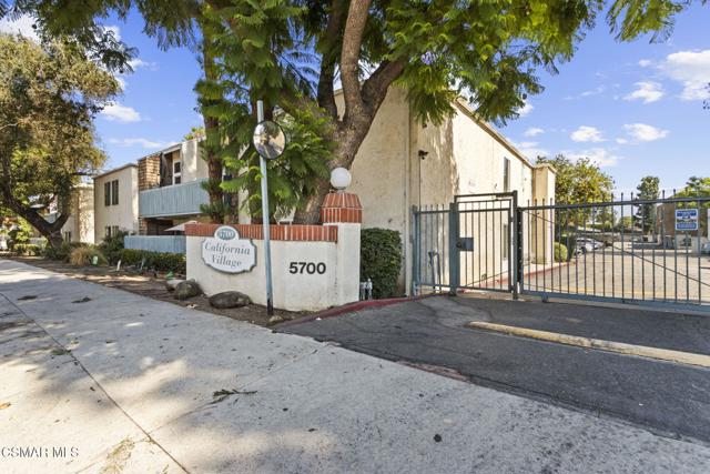 Welcome to this bright, light-filled top floor, 2 bedroom, 1 bath condominium in the sought-after California Village community! This stylish home features a spacious open floor plan featuring a kitchen that opens to a living room with vaulted ceilings and motorized curtains for the upper windows. The primary bedroom offers a walk-in closet and a private balcony provides serene tree-top views.Community amenities include a pool, jacuzzi, club house, gated entry with overnight security, and two side-by-side parking spaces. HOA dues cover water, trash, weekly complex cleaning, pool/jacuzzi maintenance, tree trimming, and overnight security. Recent building upgrades include a new roof installed in 2024. Conveniently located near Ventura Boulevard dining and shopping, Providence Cedars-Sinai Tarzana Medical Center, parks, and the 101 Freeway.