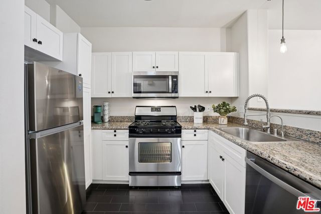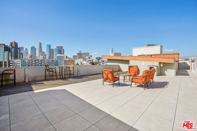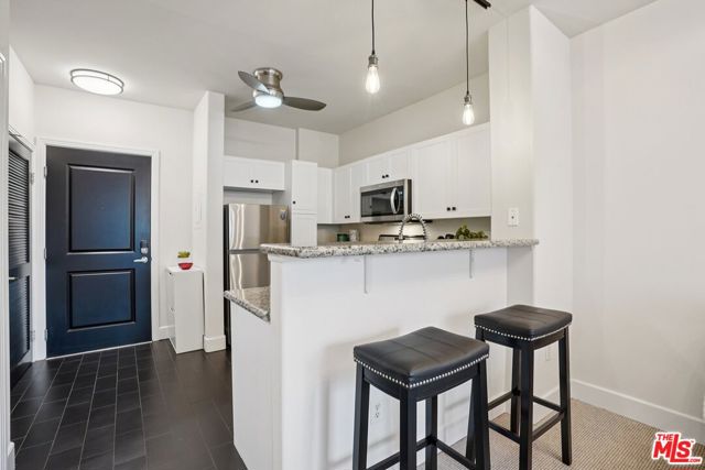 Residence #371 proves that a studio can live large. As an end unit, it enjoys added privacy and beautiful natural light, with sliding glass doors opening to a private balcony overlooking the serene pool courtyard and swaying palms: a peaceful, resort-style backdrop in the middle of the city. Exceptionally clean and move-in ready, this home features a full size kitchen with white cabinetry, granite countertops and stainless steel newer appliances. Upgraded with sleek charcoal porcelain tile flooring, cool lighting fixtures, and bold black door and hardware details add a crisp, modern edge throughout. The defined sleeping alcove connects to a fully built-out walk-in closet with custom organization, while the updated bathroom showcases a sleek vanity, black fixtures, and a modern glass-enclosed shower/tub. One assigned parking space is included. Savoy is one of Downtown LA's most established and sought-after communities, known for its lush landscaped courtyards, resort-style pool and spa, fitness center, screening room, business center, library, rooftop deck, and 24-hour attended lobby with guest parking. It also boasts some of the lower HOA dues in Downtown a significant advantage for both owner-occupants and investors. Located at the crossroads of Little Tokyo and the Arts District, residents enjoy a true neighborhood feel with walkable access to independent cafes, acclaimed restaurants, galleries, specialty markets, and Metro connections, plus quick access to the 101, 110, 5, and 10 freeways. It's a vibrant yet village-like pocket of DTLA that continues to attract creatives, professionals, and long-term homeowners alike.