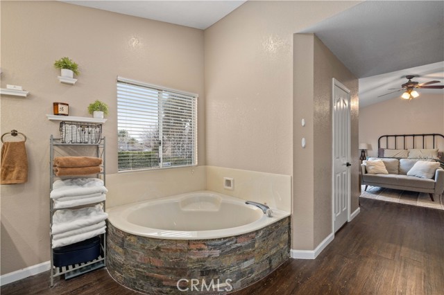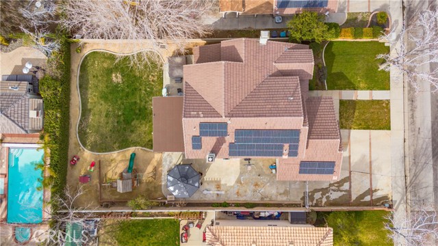 Nestled in the sought-after Quartz Hill community, this beautifully appointed residence offers 2,730 square feet of refined living space on a 9,595 sq ft lot, blending elegance, comfort, and functionality. Featuring 4 spacious bedrooms and 3 bathrooms, the home includes a Jack-and-Jill bathroom and a private office with its own fireplace, perfect for remote work or a quiet retreat. The open-concept floor plan is enhanced by soaring ceilings, abundant natural light, and modern chandeliers that create a striking first impression. The expansive living room is anchored by a stylish fireplace, ideal for both intimate evenings and upscale entertaining. Recessed lighting throughout the home adds a warm, contemporary ambiance. The kitchen is thoughtfully designed with ample cabinetry for generous storage, seamlessly connecting to the dining and living areas for effortless entertaining. Upstairs, a versatile loft provides additional space for relaxation, a media lounge, or a secondary living area. Outdoors, the property offers generous front and backyard spaces, perfect for entertaining, relaxing, or future customization. RV access along the side of the home adds rare convenience, while fully paid solar panels provide energy efficiency and long-term savings. This exceptional Quartz Hill home delivers luxury, space, and modern living in one remarkable package.