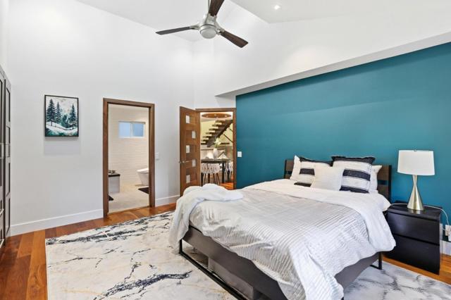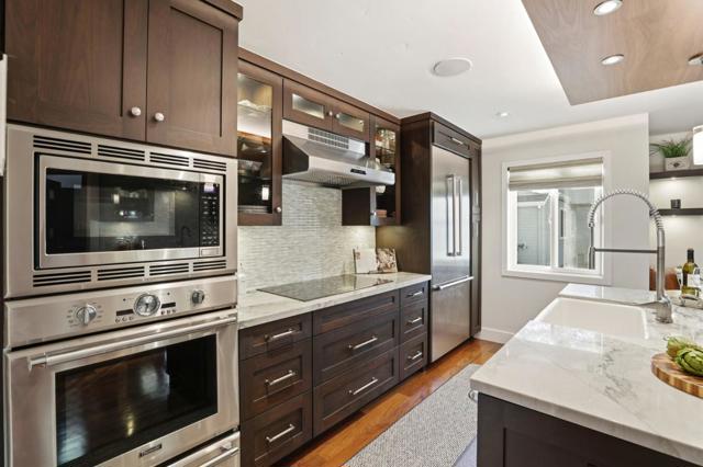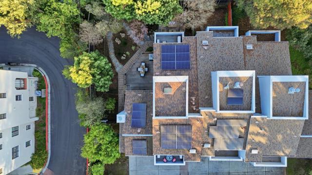 Completely rebuilt smart home in the heart of Mountain View offering modern luxury design and exceptional upgrades throughout. This premier end unit townhome lives like a private single family residence and features expansive outdoor living space within an intimate seven home community surrounded by mature trees. Inside you will find Ipe wood floors, floating glass railed stairs, solid walnut doors, designer lighting, and an open concept layout ideal for entertaining. The chef inspired kitchen showcases custom cabinetry, quartzite countertops, and premium Thermador appliances flowing into dramatic living and dining areas anchored by an eco friendly ethanol fireplace. The flexible three bedroom two and one half bath layout includes two spa inspired suites with heated floors plus a versatile 3rd bedroom with large walk in closet and private balcony. Smart home features include Savant automation, Sonos audio, automated window treatments, CAT6 and fiber optic wiring, solar panels, EV charging, and two Tesla Powerwalls. Enjoy an expansive private patio and landscaped gardens with a tranquil water feature. Ideally located near Stevens Creek Trail, Google, downtown Mountain View, and highly rated schools, this turnkey residence blends design, comfort, and Silicon Valley convenience.