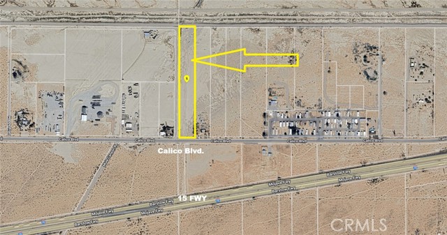 Exceptional opportunity to own 5.43 acres of flat, buildable land with direct frontage on paved Calico Blvd in Yermo. Strategically located just off the Calico Rd exit from Interstate 15, this parcel benefits from high visibility and traffic exposure from millions of travelers heading to and from Las Vegas each week. Ideal for future development or investment, this lot offers convenient access and flexible RL (Rural Living) zoning. APN: 0537-121-01-0000 ; Zoning: RL (Rural Living) ; Size: 5.43 Acres ; Zoning: RL ; Access: Paved road ; Electricity: pole at the front, Water: Drill well ; Sewage: Septic area ; GPS Coordinates (SW Corner): 34.908975, -116.855953 ;