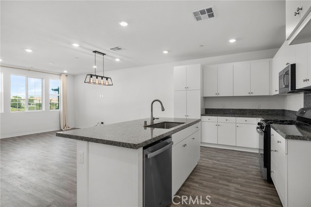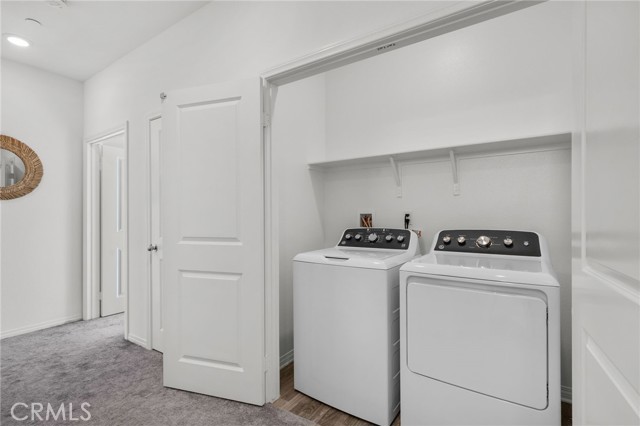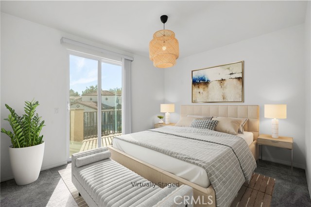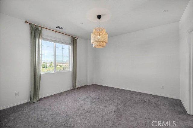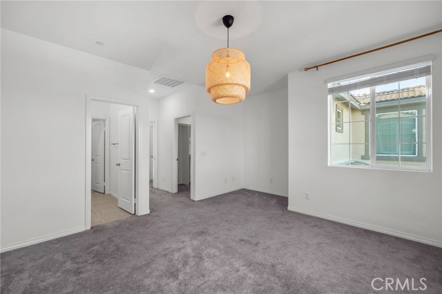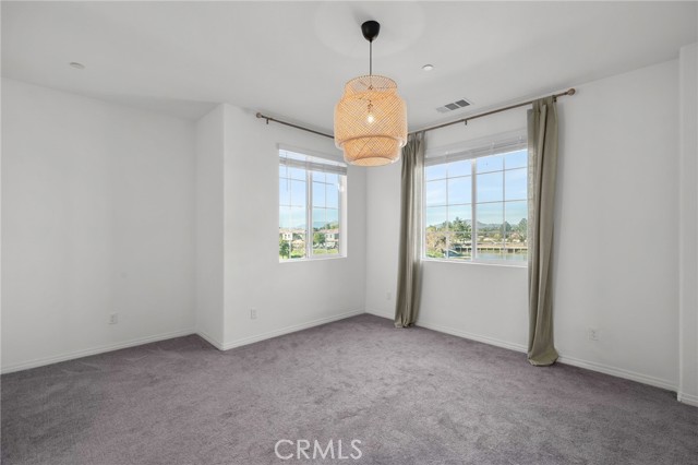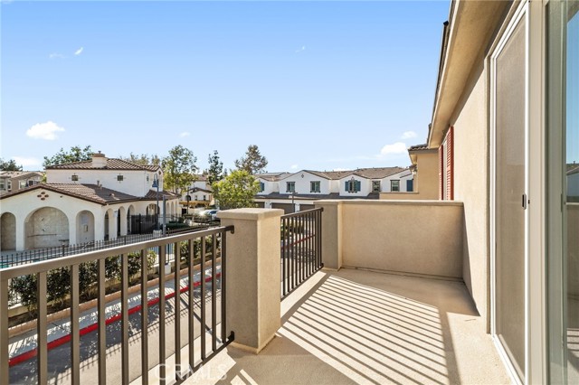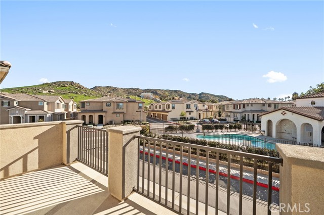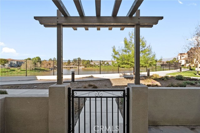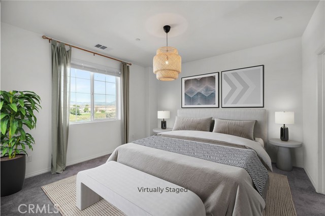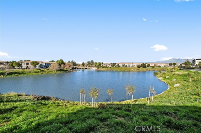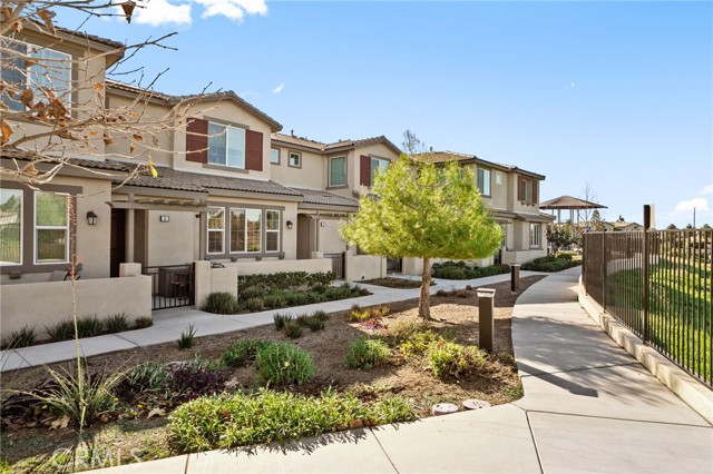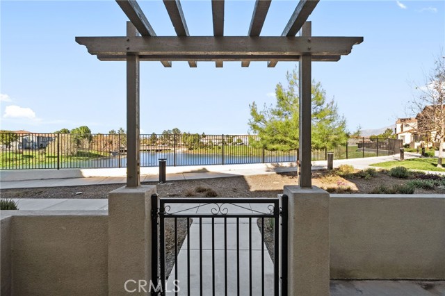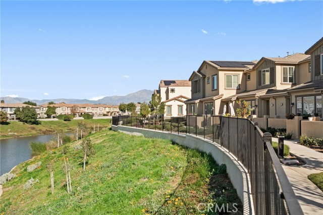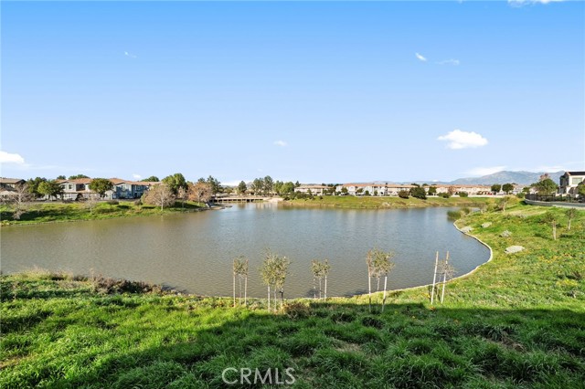 This beautifully upgraded Lennar home, built in 2022, offers 2 bedrooms and 2.5 baths in the highly desirable, gated Aspen Hills community of Moreno Valley. A charming gated courtyard porch welcomes you in, setting the tone for the thoughtful design found throughout the home. Inside, the main level features a spacious family room and a designated dining area that flows seamlessly into the modern kitchen, complete with a large island—perfect for everyday living and entertaining alike. Large windows fill the home with natural light and frame peaceful views of the community lake, creating a calm, open atmosphere that feels like a private retreat. A convenient half bath downstairs adds everyday functionality for guests while maintaining the privacy of the upstairs living spaces. Upstairs, the home features dual primary suites, each with its own en-suite bath and separated for maximum comfort and privacy. One bedroom includes a generous walk-in closet, while the other offers a private balcony with views overlooking the community pool. An upstairs laundry room adds to the home’s practical and efficient layout. The design is modern yet warm, efficient yet spacious, with paid-off solar providing energy efficiency, comfort, and long-term savings. Residents of Aspen Hills enjoy a resort-style lifestyle with access to a pool and spa, playground, scenic walking trails surrounding the private lake, parks, and a spacious community center—all within a secure, gated setting. Ideally located near shopping, dining, entertainment, and Riverside City College, this home offers the perfect blend of convenience, comfort, and serenity.