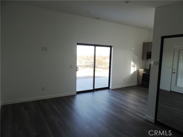 Built in 2021, this charming newer-construction home sits on a spacious 1+ acre corner lot and features a contemporary design inside and out. Fresh interior paint and brand-new luxury vinyl plank flooring create a bright, modern feel throughout. The bathroom includes a generously sized walk-in shower with custom glass sliding doors, a deco vanity with a quartz countertop, a custom bowl sink. The combo sleeping/living space offers a mirrored wardrobe closet for convenient storage which also houses the washer and dryer hookups and the energy efficient tankless water heater. Heating and Cooling is a combo HVAC unit. Propane, public electric and water, with a solar panel for additional energy savings.