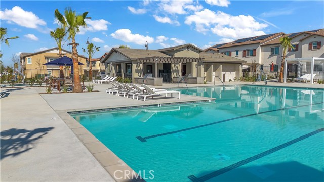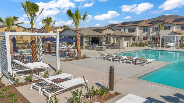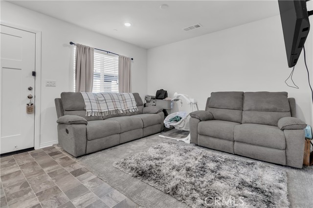 Welcome to 7179 Olive Grove Street in Riverside — a beautifully maintained, nearly new end-unit home that offers the perfect opportunity for first-time buyers ready to step confidently into homeownership. Built just two years ago, this 3-bedroom, 2.5-bath residence combines modern style with everyday comfort. As an end unit, the home enjoys added privacy and enhanced natural light, creating a bright and inviting atmosphere throughout. The open-concept kitchen and living area is ideal for entertaining or relaxing at home, featuring granite countertops, crisp white cabinetry, and a seamless flow that makes the space feel both functional and welcoming. Upstairs, you'll find comfortably carpeted bedrooms designed for rest and relaxation, including a spacious primary suite with a cozy loft just outside the bedroom — perfect for a home office, reading nook, or flex space. The conveniently located upstairs laundry room adds everyday practicality, keeping chores simple and close to the bedrooms. Energy efficiency is a standout feature, with solar panels paired with a Franklin battery system to help reduce utility costs and provide added peace of mind. An attached two-car garage offers convenience and extra storage, while the community amenities enhance your lifestyle with access to a pool and clubhouse. Even better, the monthly HOA includes Wi-Fi, adding extra value and simplifying your monthly expenses. Modern, energy-efficient, private, and move-in ready — this is an exceptional opportunity to own a nearly new home in one of Riverside’s desirable communities.