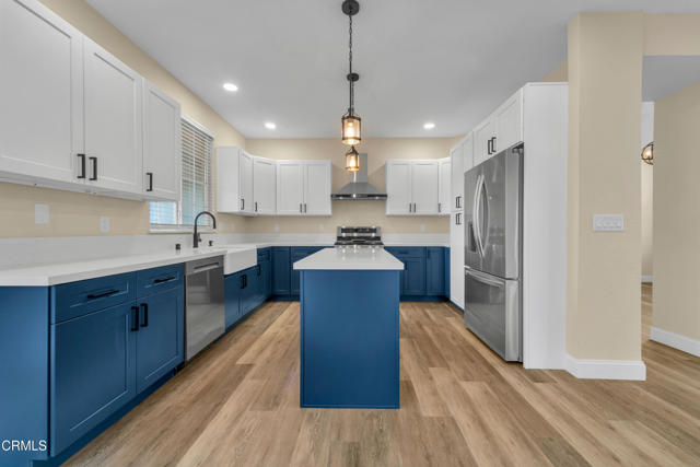 Charming Fully Remodeled, 4 Bedroom, 3 Car garage, Single-Story on the Westside of Lancaster. Welcome to this stunning move-in-ready gem--a beautifully updated single-story home nestled on a peaceful cul-de-sac. With 4 bedrooms, 2 bathrooms, 1,764 sq ft of living space, a 3-car garage, and a spacious 9,534 sq ft lot, this property offers the perfect blend of comfort, style, and privacy. Step inside to an open, light-filled interior that's been completely refreshed from top to bottom. Brand-new luxury vinyl plank flooring flows throughout, complemented by fresh paint, new ceiling fans, and modern light fixtures. The heart of the home is the gorgeous gourmet kitchen, featuring all-new shaker-style cabinetry (striking navy blue lowers paired with crisp white uppers), gleaming quartz countertops, a large center island with built-in beverage cooler, pendant lighting, stainless steel appliance package, and a farmhouse-style sink--ideal for cooking and entertaining.The inviting living area boasts a contemporary fireplace and direct access to the backyard through sliding glass doors, perfect for indoor-outdoor living. Both bathrooms have been tastefully remodeled with modern finishes: the master bath is a true retreat, complete with dual sinks, elegant vanity, and a luxurious walk-in shower featuring pebble tile flooring and high-end marble-look walls. The secondary bath offers similar upscale updates for family or guests. This home is truly turnkey with every major update already done. Don't miss your chance to own this remodeled beauty--schedule a showing today!