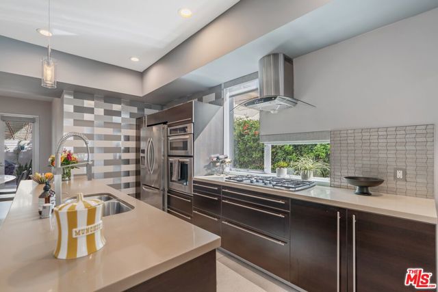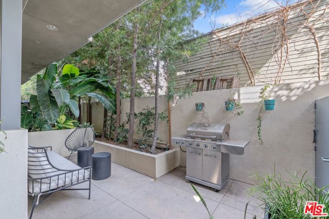 Welcome to the prestigious Harper West Hollywood Condominiums (Historically known as the Ramona Courtyards), where the elegance of 1920s Old Hollywood meets refined modern living. Nestled within beautifully landscaped courtyards featuring tranquil fountains and inviting gathering spaces, this sophisticated corner unit offers an unparalleled residential experience. Fully furnished and impeccably designed, this turn-key home boasts designer finishes, curated furnishings, and premium amenities, ensuring effortless luxury. Step into the sunlit living area, where tall windows, a stately fireplace, and exquisite stone-like flooring create an atmosphere of warmth and sophistication. The open-concept layout flows seamlessly into the gourmet kitchen, a chef's dream equipped with top-tier appliances and elegant finishes. The adjacent dining area overlooks a private outdoor patio, complete with stylish seating and a BBQ, an ideal setting for refined entertaining. The primary suite is a sanctuary of elegance, featuring a spa-inspired en-suite bath and expansive closet space. A versatile second bedroom or office and an additional beautifully appointed bathroom complete this remarkable condo. Additional features include two secure underground parking spaces and an unbeatable location on a picturesque tree-lined street, just moments from renowned restaurants, gourmet markets, and upscale shopping. Simply bring your toothbrush, this exceptional residence provides everything else. Some artwork may be excluded from the lease. Property is also available for sale at $1,299,000