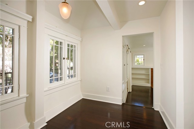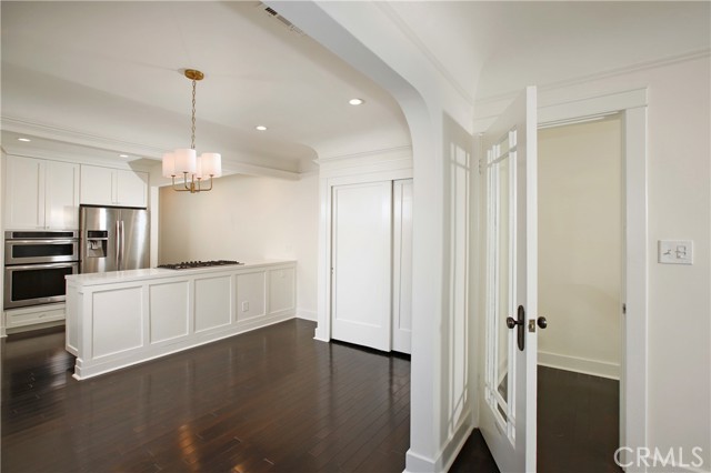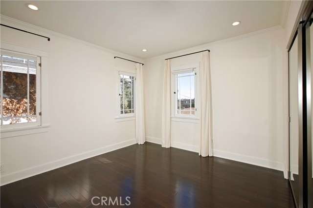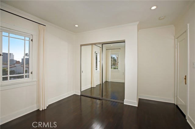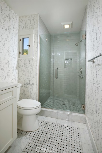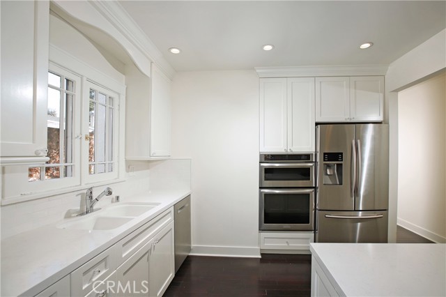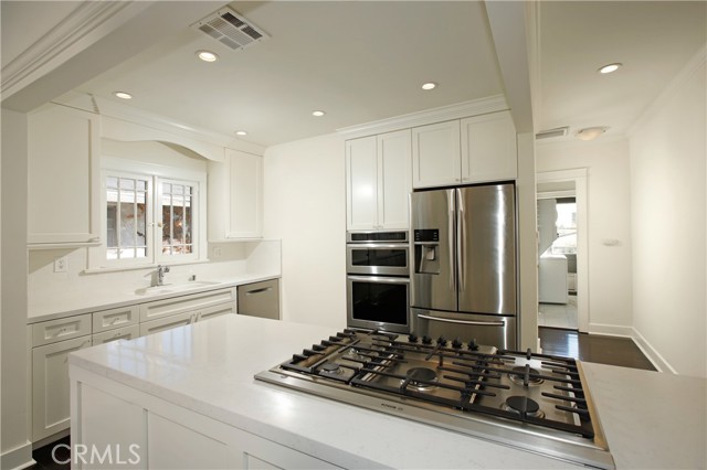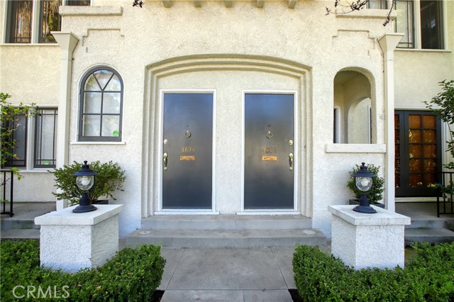This top floor corner unit was tastefully remodeled with a beautiful chef's kitchen with quartz counters, stainless appliances, and all new cabinetry. The bath was completely remodeled as well with a large stall shower with custom tile work and glass enclosure. The front door is on the ground level with private stairs leading to the formal living and dining rooms with wood flooring, gorgeous original windows and built-ins, and a faux fireplace with authentic Batchelder tile. There is also a private home office with tree top views, a private laundry room in the unit, and a private view balcony. This special unit also enjoys updated central heating and air and one covered parking space in the lovely rear yard with a large grass area, avocado tree, and pampered gardens.