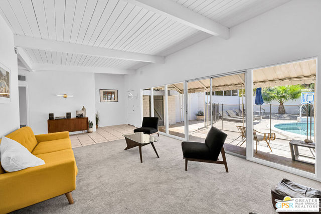 Unlock the potential of this expanded mid-century modern Meiselman home in the iconic Racquet Club Estates of Palm Springs. Set on an expansive 1/4-acre lot, this architectural gem offers the rare opportunity to restore, redesign, or fully reimagine a true piece of desert modern history. Spanning approximately 1,800 square feet, the home features a dramatic south-facing wall of glass that floods the living room with natural light and frames views of the kidney-shaped pool and mature palms beyond. A classic fireplace anchors the space, preserving the home's authentic mid-century character. The primary suite retains its vintage tiled bath and walk-in closet, while two additional bedrooms provide generous accommodations for guests or creative flex space. An expanded great room with open kitchen layout offers tremendous upside the perfect canvas to create a show-stopping modern desert retreat. Outside, the oversized lot delivers privacy, scale, and room to elevate the poolside experience into a true resort setting. Mature palms enhance the serene ambiance and underscore the property's timeless Palm Springs appeal. Adding significant value, the sellers have already invested $25,000 in custom architectural plans for a full remodel included in the sale. Some upgrades done; copper plumbing, HVAC system, pool heater, and pool resurfaced in 2022. Whether you're a mid-century purist, design visionary, or savvy investor, this is a great opportunity to create something exceptional in one of Palm Springs' most celebrated neighborhoods.