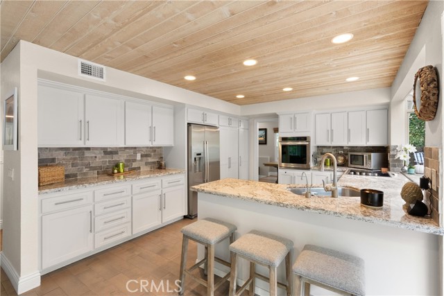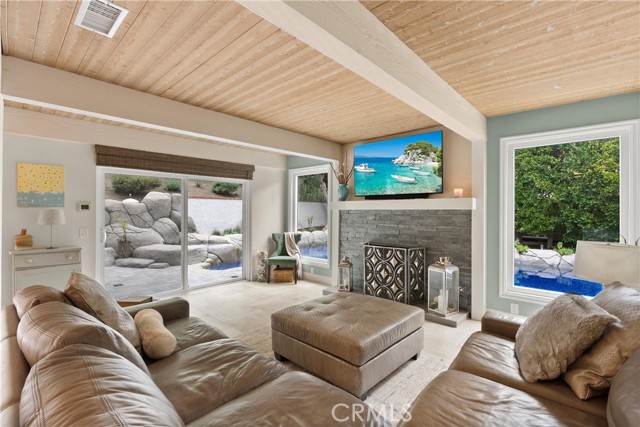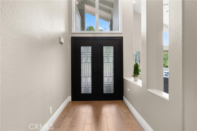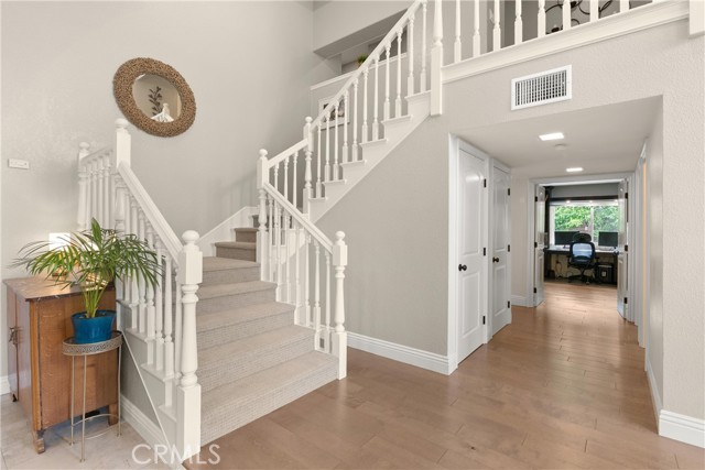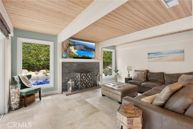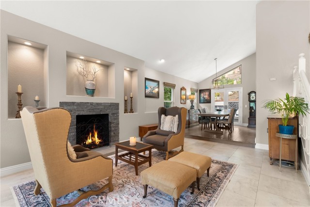 Gorgeous residence located at 29771 Monarch Drive, positioned on an expansive lot along a quiet single loaded street within the highly regarded Capistrano Royale community. This upgraded home provides privacy, comfort, and a tranquil retreat feel. A custom steel entry door creates a striking first impression, opening to a dramatic great room with soaring ceilings and expansive windows that invite abundant natural light, accentuating the wood flooring and oversized tile. The thoughtfully designed kitchen showcases stone countertops and shaker cabinetry blending style with everyday functionality. A versatile main level room provides flexibility as a bedroom, guest quarters, or private office. Upstairs, the primary suite offers a peaceful retreat. Vaulted ceilings with exposed wood beams create architectural warmth, while a private balcony presents a serene setting for morning coffee or sunrise views. The spa inspired bath is beautifully appointed with marble countertops, dual vanities, a freestanding soaking tub, and a walk-in shower. The suite is completed by two separate closets with custom organization system. Additional highlights include a Nest thermostat, upgraded lighting, dual-pane windows, an updated HVAC system, replaced water heater, two stacked-stone gas fireplaces, and an upgraded side fence. The backyard is a private sanctuary framed by mature landscaping. The saltwater pool and cascading spa, illuminated by LED lighting, feature upgraded equipment including a saltwater system, filter, vacuum, and pump. The front and rear yards are enhanced with upgraded paver hardscape and thoughtfully designed seating areas, a Restoration Hardware fire pit, creating a tranquil and inviting outdoor atmosphere. The expansive lot also offers space for a potential garden oasis. Residents of Capistrano Royale enjoy access to a clubhouse, pool, tennis courts, and scenic trails. Located near historic downtown San Juan Capistrano and just a short drive to Doheny Beach. An exceptional offering in one of San Juan Capistrano’s most established neighborhoods.