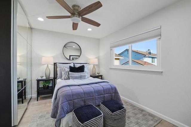 Welcome to this bright and clean home nestled in a desirable pocket of Almaden, located within the highly regarded SJ Unified School District with top-rated nearby schools. A charming tile walkway and pebble stone accented planters lead to the front door beneath a classic tile roof. Inside, vaulted ceilings create an airy feel, while fresh interior paint, recessed lighting, tile flooring throughout the main level, and a cozy fireplace add warmth and style. The kitchen features custom cabinetry, stainless steel appliances, quartz countertops, and bar seating, thoughtfully designed for everyday living. The 3-bed, 2-bath layout offers flexibility, including an upstairs primary suite with walk-in closet and ensuite bath, a downstairs bedroom with its own ensuite and hall access, and an additional guest bed or home office. The peaceful backyard showcases stone pavers and raised planter beds with lush yet low-maintenance greenery, creating a private space to relax and unwind. The 1-car attached garage has epoxy flooring, washer and dryer, interior access through the kitchen, and access to the backyard. Set within a quiet, friendly Almaden neighborhood known for scenic trails and beautiful natural surroundings, this home offers comfort, convenience, and a relaxed lifestyle.