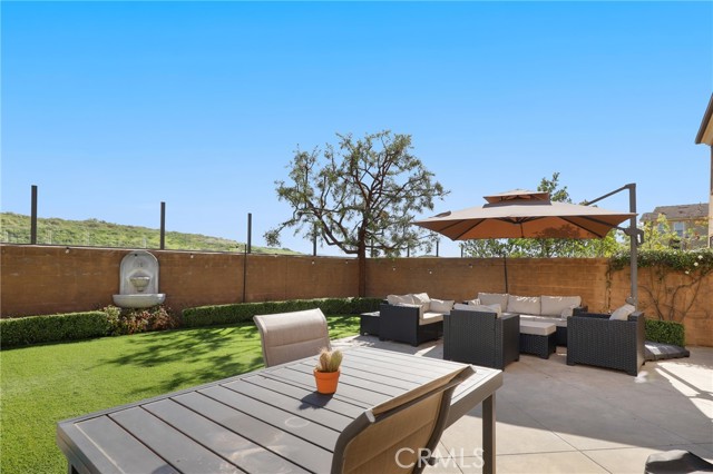Situated on a highly desirable corner lot with no neighbors behind, this exceptional home offers rare privacy and serene hillside views in the sought-after Aria neighborhood of Esencia, Rancho Mission Viejo. This beautifully upgraded 3-bedroom, 2.5-bath residence blends modern design with comfortable California living. Light pours into the open-concept floor plan, highlighting hardwood flooring, custom built-ins, a designer fireplace, plantation shutters, recessed lighting, ceiling fans, and energy-efficient smart home features throughout. The stunning kitchen is truly the heart of the home, featuring a large center island, quartz countertops, detailed custom backsplash, gas range, and stainless-steel appliances — ideal for everyday living and effortless entertaining. Step outside to one of the larger backyards in Aria — thoughtfully landscaped with low maintenance turf, ambiance lighting and designed for gatherings, relaxation, and enjoying the peaceful backdrop. With no one directly behind you, the space feels private and open, creating the perfect indoor-outdoor lifestyle Southern California is known for. Upstairs, the spacious primary suite captures beautiful natural light through picture windows and includes a custom barn door, built-in workstation, and a spa-inspired bath with dual sinks and quartz countertops. Two additional generously sized bedrooms share an upgraded Jack-and-Jill bathroom. The upstairs laundry room is both stylish and functional with designer tile flooring, abundant storage, and a built-in sink. Living in Esencia means embracing the award-winning Rancho Mission Viejo lifestyle — a vibrant master-planned community known for its unmatched amenities and community spirit. Residents enjoy resort-style pools with lifeguards, adult pool bars, a neighborhood coffee shop, fitness centers, racquet courts, community farms, scenic hiking and biking trails, South Paw Dog Park, and the expansive 30-acre Esencia Sports Park. Year-round events and neighborhood gatherings create a true sense of connection and belonging. Ideally located just minutes from shopping, dining, entertainment, Ortega Highway, and the 241 Toll Road — and a short drive to the beautiful beaches of Dana Point and San Clemente — this home offers the perfect balance of privacy, convenience, and resort-style living. This is more than a home — it’s a lifestyle.