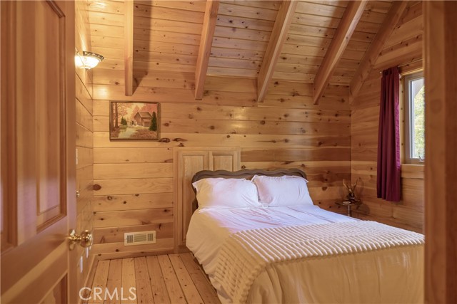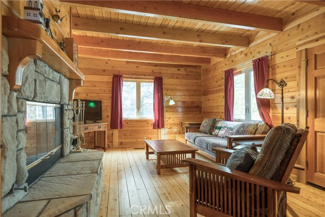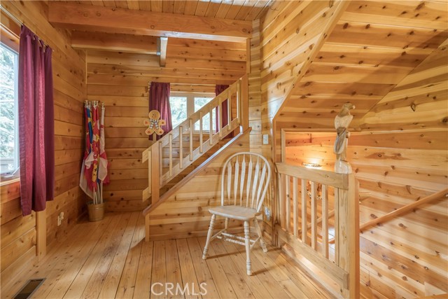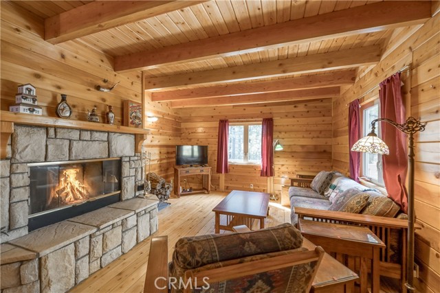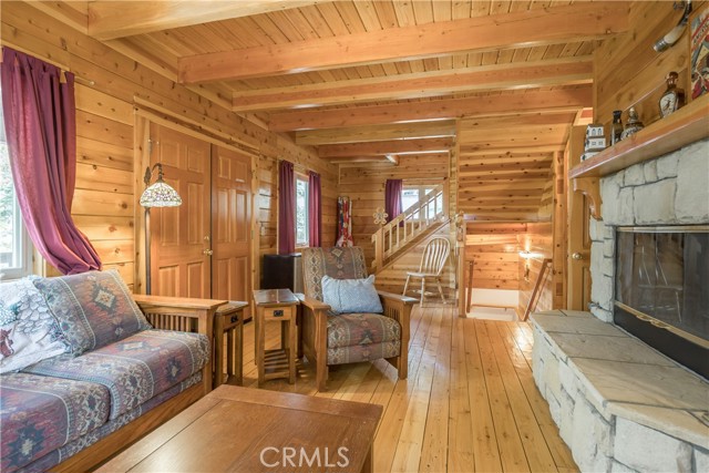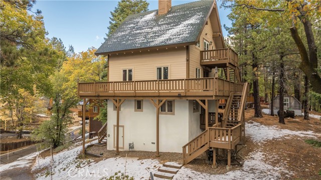 Nestled in the serene embrace of Green Valley Lake, this charming mountain cabin offers respite from the hustle and bustle of everyday life. With the feel of a perfect Swiss Chalet transported to the SoCal mountains, this inviting retreat spans 2,297 square feet and features three spacious bedrooms and three well-appointed bathrooms, ensuring comfort and privacy for family and guests alike. This home is pristine inside and out! Inside, you'll find the living areas adorned with rich hardwood floors, central heat and two fireplaces on the first and second floors, perfect for warming up during crisp mountain evenings. The kitchen boasts modern amenities, including a dishwasher, gas oven, and range, complemented by a functional breakfast bar ideal for casual dining and gathering. Outside, the expansive 15,743-square-foot lot presents a picturesque setting for leisurely enjoyment or entertaining. Enjoy tree top views from generous expansive decking and welcoming porch, providing the perfect vantage points to soak in the tranquility and beauty of the surrounding landscape. A dedicated laundry room with private entrance and interior door can be a fourth bedroom, office or dining area This home harmoniously combines rustic charm with modern comforts, making it a perfect haven for those seeking a peaceful retreat or a full-time residence in the heart of nature. Convenient access to Snow Valley ski resort 15 min drive away, and close proximity to a private lake with a sandy beach, lifeguards and boat rentals. Enjoy local live music, seasonal festivals and hiking or biking on off-road trails. Embrace the mountain lifestyle in this delightful cabin, where every corner promises warmth and relaxation.