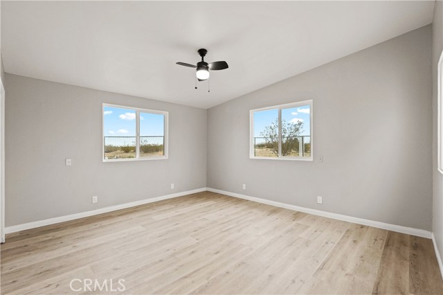 Welcome to your 5 Acre Desert compound offering everything you have looked for in such a purchase and a few things you didn't even know you needed/wanted! To begin, the whole 5 acres is fenced, along with several smaller areas inside the acreage fenced as well. With some people paying $20.00/ft or more for fencing and almost 2,000 linear feet of fencing on the property that is a $40,000 upgrade right there you'll be hard priced to find anywhere else! Moving on the property is on a working well and septic eliminating pesky reoccuring monthly expenses and features a large oversized 3 car garage complete with large viewing deck and platform. Ever said to yourself man I have beautiful desert views to the Big Bear mountains but just don't have the elevation or height to view it? Maybe not, but even so here you have a lovely observation deck to relax and take in the beauty of the expanse. Now I know what you are thinking, all this must mean the house needs work? WRONG! The whole home is tastefully remodeled including new flooring, dual pane windows, a kitchen complete with shaker cabinets, quartz counters and a stainless appliance package. The home features a mini-split system for easy heating/cooling as well as a wood burning stove for cozy winters. There are 3 bedrooms including a generous master suite and 2 bathrooms making the home very functional. Last possible concern the price? Again, not an issue as the home is priced well below some recent sales for similar sized properties on far smaller lots. Priced to move quickly so act fast!