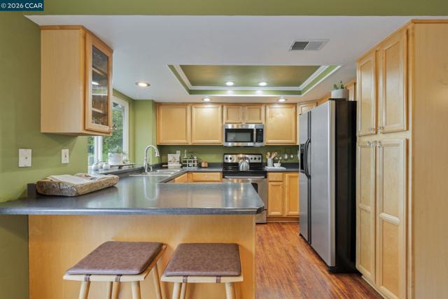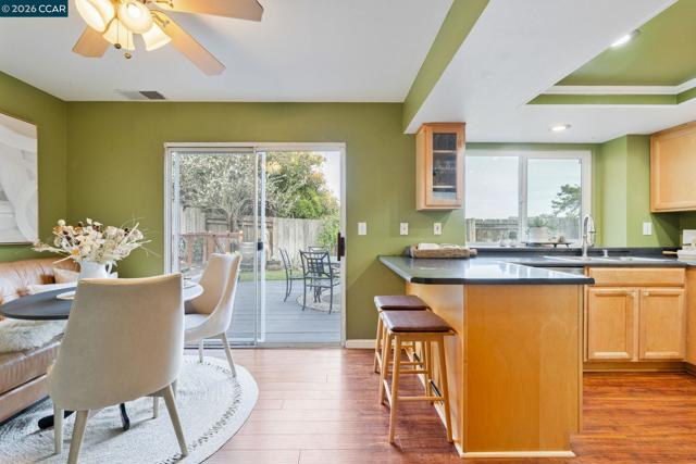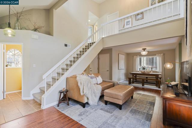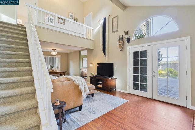 Welcome to this stunning and immaculately maintained 4 bedroom, 2.5 bathroom home in the highly sought after Glen Cove adjacent Meadowood Subdivision. Offering 1,565 square feet of inviting living space, this thoughtfully updated residence blends warmth, style, and comfort with undeniable curb appeal. The cozy living room fireplace creates the perfect gathering space, complemented by soaring vaulted ceilings that fill the home with natural light and an airy, open feel. Rich engineered hardwood floors highlight the living and dining areas, while the upstairs bedrooms and hallway feature soft, plush carpeting for added comfort. A new roof along with newer central heat and air ensure year round peace of mind. Step outside to a large, beautiful deck overlooking a lush, landscaped backyard with captivating views, creating a private retreat ideal for entertaining, gardening, or quiet reflection. The overall vibe feels like an artist’s retreat, inspiring creativity and calm in every corner. Conveniently located near downtown Vallejo and Benicia, this exceptional home offers both tranquility and accessibility in one remarkable setting.