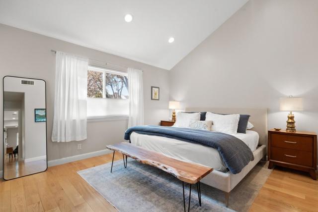 Welcome to this gracious 1622 square home located in the coveted community of Hamilton Place in San Jose. Step into the front door of this stylishly well maintained home and discover your new lifestyle! A contemporary style graces this home and embraces minimalistic elements with sleek, thoughtful details that emphasize an edited aesthetic. Large picture windows and commanding high ceilings stream beautiful warm natural lighting into the spacious living space. The kitchen is the heart of this home, designed to blend functionality with charm. Whether your are preparing weeknight meals or entertaining guests, you'll love the ample storage, and inviting dinette area perfect for casual breakfasts, lunches, or dinners. On the main level, you'll find an indoor laundry closet located just steps from the two car attached garage. A ½ bathroom for visiting guests keeps the 2nd level of the home private. At the top of the stairs is a loft that opens up to the downstairs living space. So many options for this loft space. Style it as an office, or a quiet reading area with a day bed that can easily transform into a space for an overnight guest. A private wraparound front patio is designed for entertainment or to simply enjoy a cool quiet California evening!