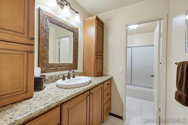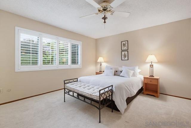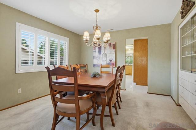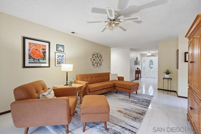 It's not just a home-it's Fletcher Hills Highlands finest! Highly sought-after 1 level, 4 bedroom home on one of the areas most coveted streets! Fall in love the minute you arrive! Gorgeous turf front yard with tropical flowering landscape! Private courtyard entry leads you to the stunning beveled glass front door! Open to formal entry and feel all the amazing flowing natural light! To your left, the large living room with oversized front window allowing for more light + cozy fireplace ideal for cooler evenings! Living room flows to dining area with built-in china cabinet and plenty of room for family dinners or gatherings! Updated kitchen with custom cabinetry, beautiful counters, window with views to backyard, breakfast bar seating and breakfast area for your more casual meals! Big family room with slider to the backyard oasis! Large primary suite with en-suite updated bath! Great sized additional bedrooms-1 could be a perfect office! Lush backyard with covered patio, plenty of green grass for kid play, pets, or entertaining, fruit trees, and loads of privacy! Details not to miss- 3 car garage, central HVAC, new roof with composite cool shingles (2024), plantation shutters on dual-paned windows, + walking/hiking trails close by! Make this YOUR home before someone else does! Welcome Home!