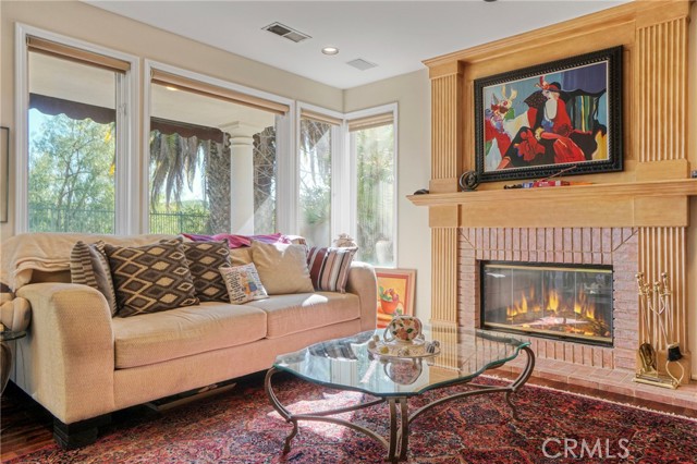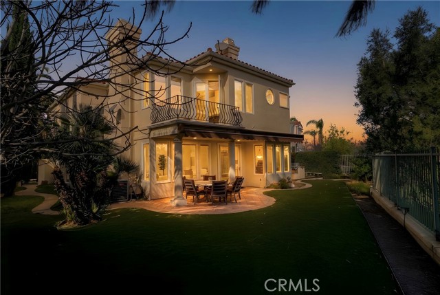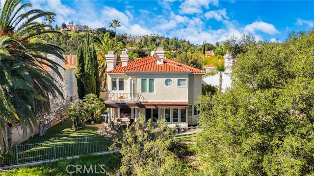 Located within the prestigious guard-gated Bellagio community, this Mediterranean-style residence captures beautiful hillside and treetop views that enhance both privacy and ambiance, creating a true sense of retreat. Thoughtfully positioned to take advantage of its scenic surroundings, the home offers approximately 3,788 sq ft of living space on a 7,343 sq ft lot, with four bedrooms and five bathrooms, highlighted by an elevator providing convenient multi-level access. The light-filled interior showcases soaring two-story ceilings, expansive windows, and an open yet functional floor plan designed for comfortable living and entertaining. The kitchen features generous cabinetry, center island, and a sunlit breakfast nook overlooking the greenery beyond, flowing seamlessly into the main living areas. Formal and casual spaces are both warm and inviting, complemented by fireplaces and timeless architectural details. The primary suite serves as a private sanctuary, complete with its own fireplace, balcony, and tranquil hillside outlooks. Secondary bedrooms are well-sized and versatile for guests, office, or lifestyle needs. Outdoor spaces embrace California living with lush landscaping, patio areas for dining and lounging, and peaceful views that provide a rare sense of serenity within a community setting. The yard offers both usability and privacy, ideal for relaxing or entertaining. Additional highlights include a dedicated laundry room, ample storage, and a three-car garage. Residents of Bellagio enjoy security, pride of ownership, and close proximity to shopping, dining, and highly regarded schools. A rare opportunity to own a view-oriented home that blends comfort, functionality, and location within one of the area’s most sought-after communities.