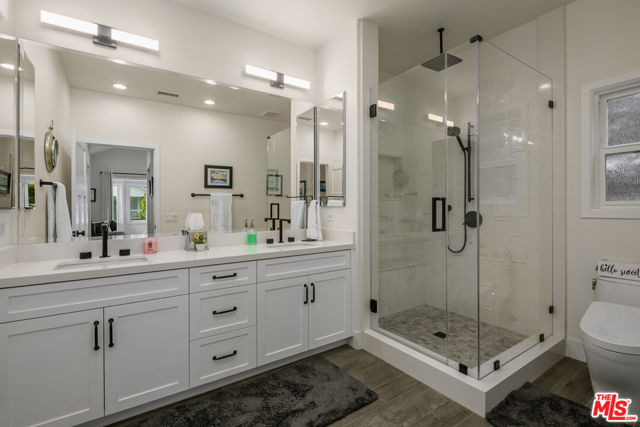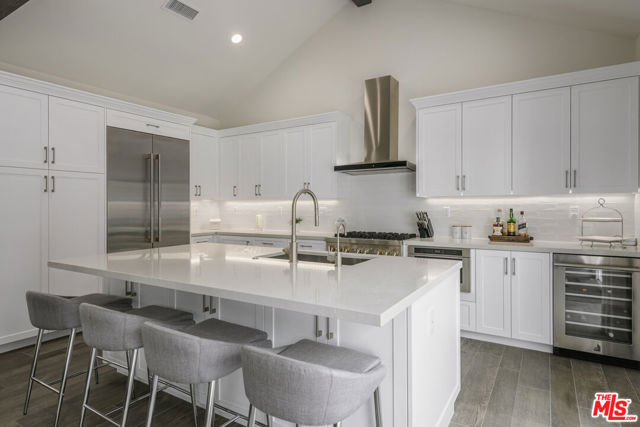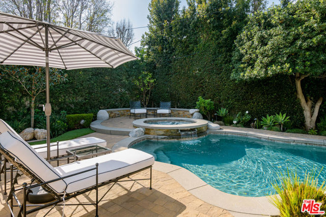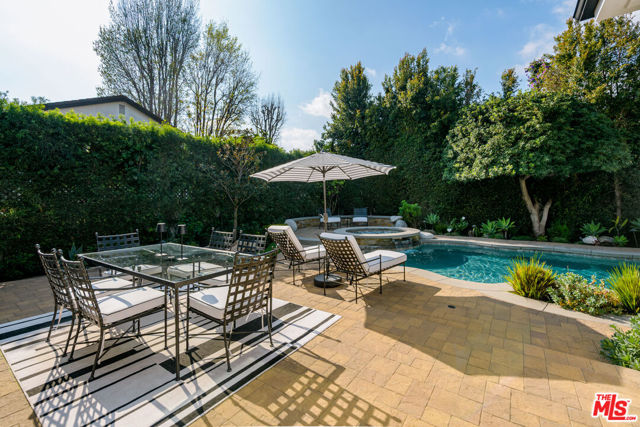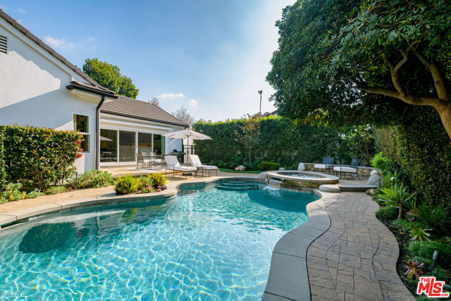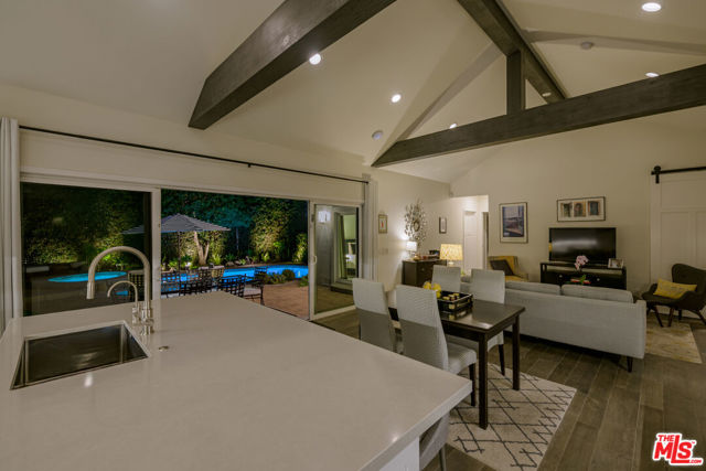 Located in the sought-after enclave of tree-lined Toluca Lake, this 2+2 jewel-box masterpiece was rebuilt from the studs up in 2020 with grade-A attention to detail and all the finest materials and finishes, including long-life fiberglass tiled roof, 220V electrical panel, and built-in whole house wifi. Vaulted, beamed ceilings overlook a welcoming great room and dreamy chef's kitchen, with top-of-the-line JennAir appliances, including Obsidian black interior side-by-side refrigerator, professional gas range, wine fridge and under the counter-microwave. Beautiful quartz counters, soft-close custom cabinetry and a dramatic island with Fisker sink and Insta-hot water system add to the practical elegance. 16' of pocket glass doors open up to a private backyard oasis that's home to an app-controlled salt-water pool and hot tub, with pebble tec finish and eco-friendly, drip-system landscaping, serenely illuminated at night thanks to solar cell lighting. The primary suite is a true sanctuary, with two custom-designed walk-in closets and a spa-like en suite bathroom with double-sinks, built-in vanity and walk-in shower. Second bedroom features it's own custom design walk-in closet and easy access to the backyard. Second bathroom is ideally located near the second bedroom and a side entrance that leads to the pool. Top-of-the-line flooring which gives the illusion and warmth of hardwood, while providing the durability of ceramic, runs throughout the home. Laundry area features wash sink, hanging area and high-end Electrolux washer and dryer. Garage features custom flooring and storage system, as well as EV charging plug. A full list of the upgrades (yes, there are still more!) is included in the supplemental docs. This is a well-loved and meticulously maintained home that really must be seen to be fully appreciated.