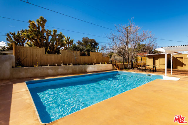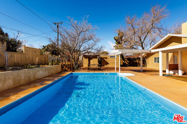 A 6-bedroom, 5-bath pool home on a generous lot in Yucca Valley, just minutes from Joshua Tree National Park, nearby hiking trails, restaurants, and the shops along Highway 62. Five of the six bedroom have en-suite, providing comfort and privacy throughout. The spacious kitchen opens seamlessly to multiple living areas, including a great room with fireplace, an inviting family/yoga room with barn door, utilized as a 6th bedroom/private retreat, and a formal dining room highlighted by a modern electric fireplace and abundant natural light, or possible 7th bedroom. The expansive rear wood-deck patio overlooks the in-ground vinyl pool, creating a perfect setting for entertaining, relaxing, or retreat-style living. The large driveway offers ample parking, with additional storage sheds at the rear of the property. Cooling is provided by a swamp cooler and mini-split systems, with heating via mini-splits and fireplaces. With its flexible layout and serene desert surroundings, this property offers exceptional potential as a private residence, vacation getaway, or rental opportunity, and is well suited for wellness, yoga, or meditation retreats.