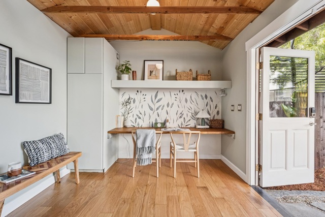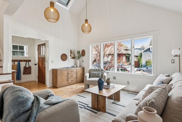 Set on a special cul-de-sac where neighbors truly know one another and have built a genuine sense of community, this 3 bedroom/2 bathroom craftsman cotttage delivers the layout buyers are always searching for and rarely find. The main level features soaring ceilings in the living room and the functional kitchen is anchored by striking tilework, custom cabinets and thoughtful storage (don't miss the coffee station!). French doors open directly to the backyard, creating that ideal indoor/outdoor flow. A main-level bedroom and full bath provide exceptional convenience , especially for those who value level-in access with minimal stairs from the street. The upper level includes a spacious bedroom and a true primary with a walk-in closet, high ceilings and doors opening to a private balcony Also upstairs, a bright and roomy laundry room could serve other purposes. Out back, a separate studio offers valuable additional space for a home office, bonus room or creative use. The yard is beautifully designed, offering room for dining or lounging, all framed by mature plantings that create privacy and charm. Irwin Court is a quiet street...but there is so so much you can find nearby! From Ashby BART to Boichik Bagels on College Ave, they are all a stroll away.