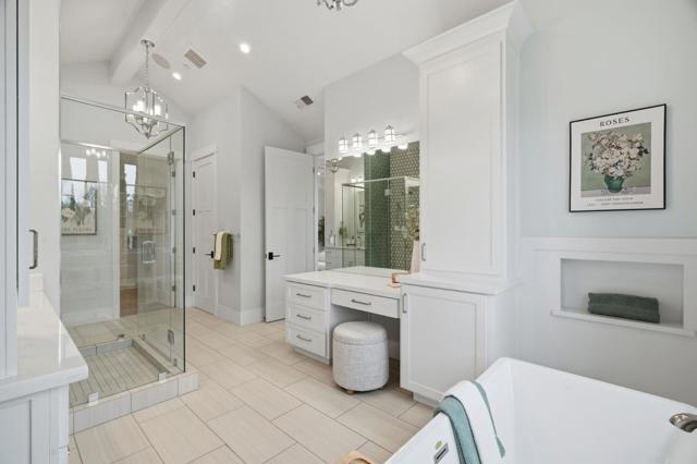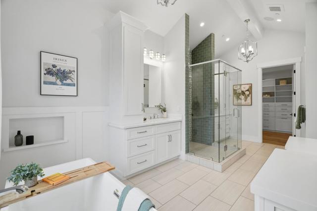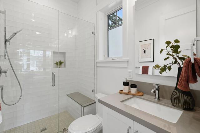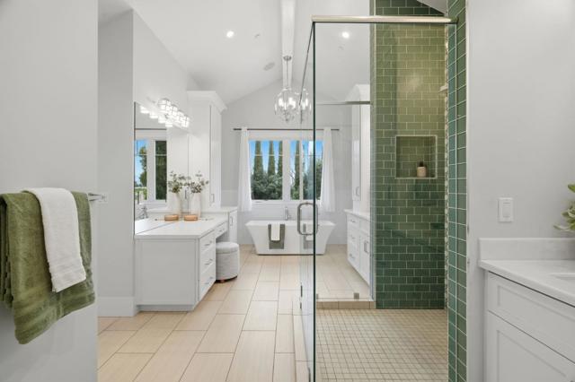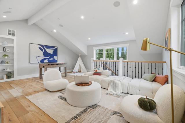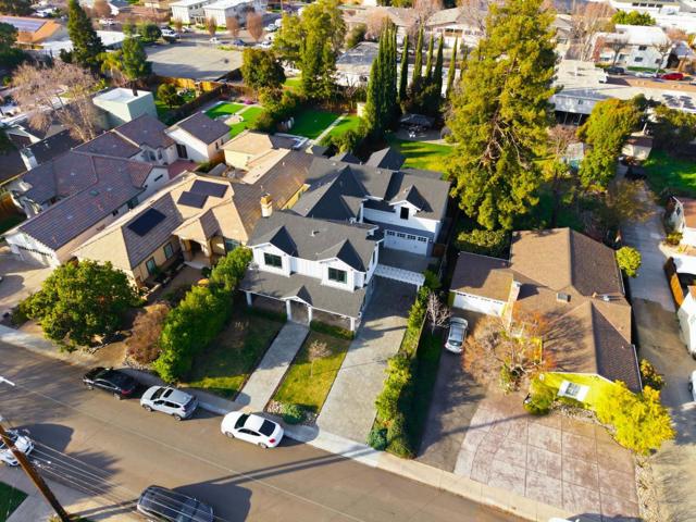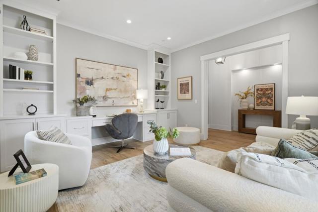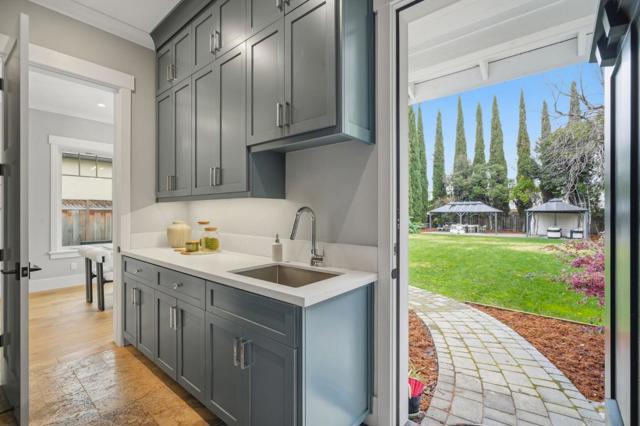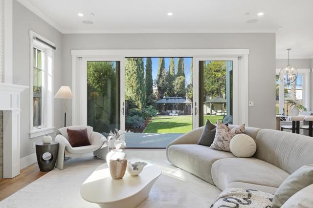 Stunning home built in 2019; almost 4400 sq.ft., open & bright, tall ceiling throughout. Over 13,000 sq.ft. of one of the deepest/largest lots in Willow Glen. 5 bedrooms (formal living room with barn doors can be used as office or 6th room) including a guest bedroom with en-suite bath on the ground level. Formal dining room with double sliding glass doors to side porch + wine cellar with glass wall. Great room with double sliding glass doors to extra-deep rear yard with lawn, deck & patios. Open chef's kitchen features island with counter seating, marble-style quartz counters; high-end Thermador appliances including built-in refrigerator, gas range with 6 burners + 2 ovens; banquette-style casual dining. Primary suite has walk-in closet; en-suite spa-like bath with separate vanities, freestanding tub, frameless glass shower, private commode room. Additional bedroom with en suite bath, plus 2 bedrooms sharing Jack-and-Jill bath. Accessed from a rear staircase or hidden bookshelf door from primary suite closet, is an extra-large flexible-use room with 2 walk-in closets, cathedral ceiling, and half-bath. Powder room; mudroom; laundry room with sink, washer & dryer; attached 2-car garage wired for EV charging; tankless water heater; multi-zone air conditioning. Close to Downtown WG.