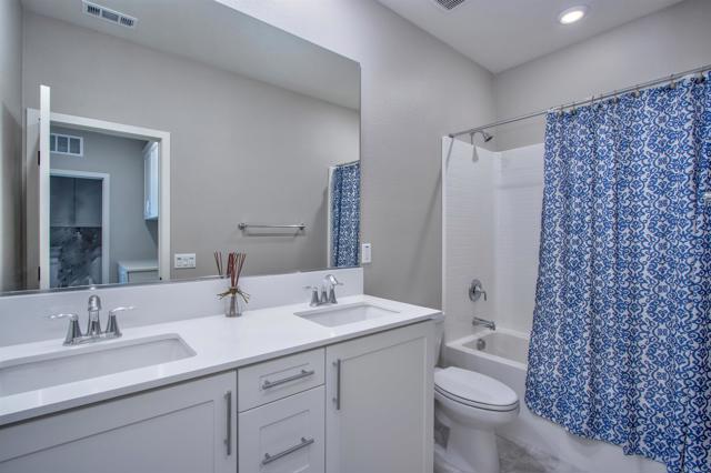 Available April 1. Beautiful townhouse located in a desirable gated community in Vista. This thoughtfully designed home features direct access to a two-car garage and three bedrooms, all conveniently located on the second level. The first floor offers an open-concept great room with kitchen and family room, showcasing modern finishes throughout, including white quartz countertops, white cabinetry, and luxury vinyl plank flooring—no carpet on the main level. A solar system helps reduce utility costs, and refrigerator, washer, and dryer are included for added convenience. Enjoy a private, walled patio that opens directly to a community park and playground with BBQ area, perfect for relaxing or entertaining. The community pool and spa are just a short walk away. Ideally situated near CA-78, with easy access to shopping, dining, and everyday conveniences.