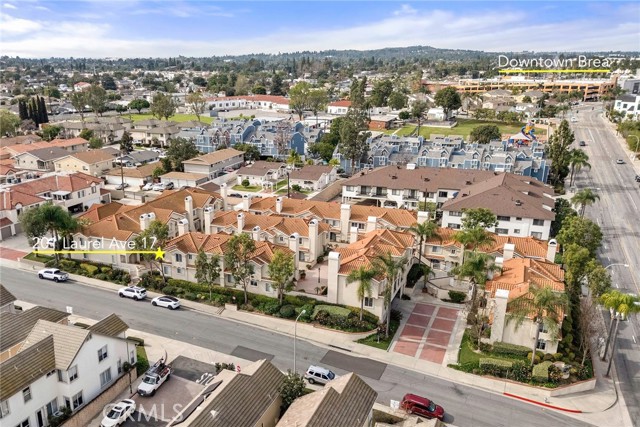Welcome to this beautifully updated end-unit condo, perfectly situated near the vibrant lifestyle and sought-after amenities that Downtown Brea offers. Light and bright, this home is filled with natural sunlight thanks to a multitude of windows throughout with this superior end-unit location. The lower-level features soothing wood-look flooring and an open living and dining area, anchored by an inviting fireplace that adds warmth and charm. The well-appointed kitchen offers plentiful meal prep counter space, convenient dining counter, sleek easy-care countertops, ample storage, and includes a gas range, microwave, dishwasher, and refrigerator. A full-size indoor laundry room lies adjacent to the kitchen, while the powder room complete the downstairs. Upstairs, you’ll find two spacious primary suites, each with a generous closet space and a full tub/shower combination—ideal for comfort and privacy. Step outside to your private sunny deck, perfect for outdoor entertaining or weekend BBQs. Additional highlights include two parking spaces in the gated subterranean garage, along with plentiful street parking for guests. HOA amenities include a soothing bubbling spa just a few steps from your front door. This property is just a short stroll from Downtown Brea’s lively mix of boutique shops, award winning restaurants, and live entertainment venues. All this plus an easy commuter location rounds out the perfect package