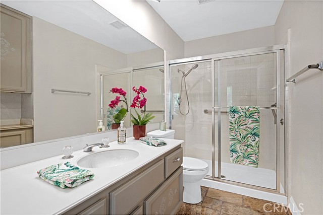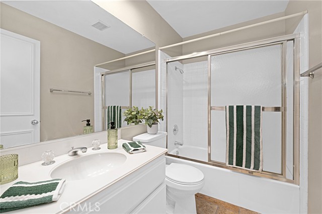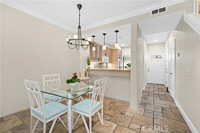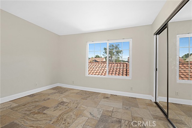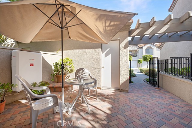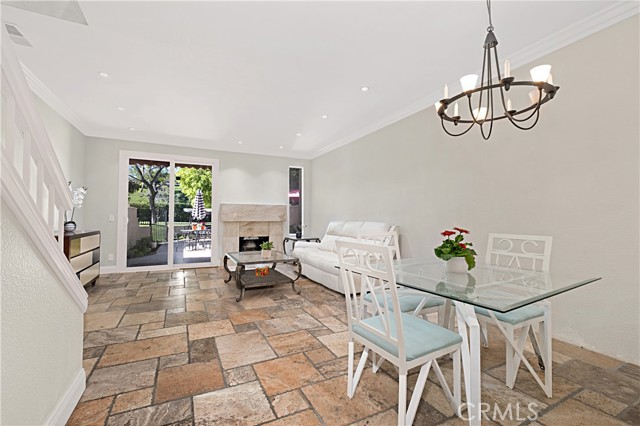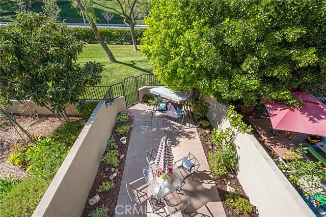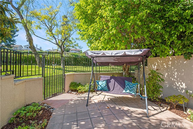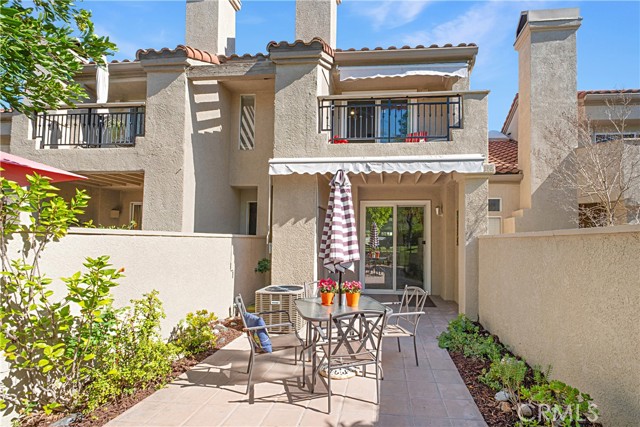 Coral Gardens is a highly sought-after community in Mission Viejo, located within walking distance of Lake Mission Viejo. This charming townhome-style condominium offers a private gated courtyard and an open-concept dining and living area with a cozy fireplace. Enjoy seamless indoor-outdoor living with a sliding door leading to a spacious backyard offering beautiful greenbelt views. The home features two bedrooms and two and a half bathrooms, with travertine flooring throughout. The modern kitchen is equipped with quartz countertops, a glass tile backsplash, a breakfast bar, and a nearly new stainless-steel refrigerator and soon-to-be-installed stove. The main floor also includes a convenient half bath and storage closet. Upstairs, the spacious primary suite offers a private deck with unobstructed views and an ensuite with dual vanities and quartz countertop. The second bedroom overlooks the courtyard, and the hall bath includes a tub/shower combination and quartz countertop. Additional amenities include a laundry closet with washer and dryer, solar panels, and central air conditioning. Community amenities include a pool, 2 spas, 2 tennis courts, scenic walking trails, and lush green belts. Residents enjoy membership of Lake Mission Viejo, offering year-round boating, swimming, summer concerts, clubhouses, and community events. Ideally located near parks, hiking/biking trails, top-rated schools, shopping, dining, major hospitals, freeways/toll roads, and is approximately 30 minutes from world-class beaches.