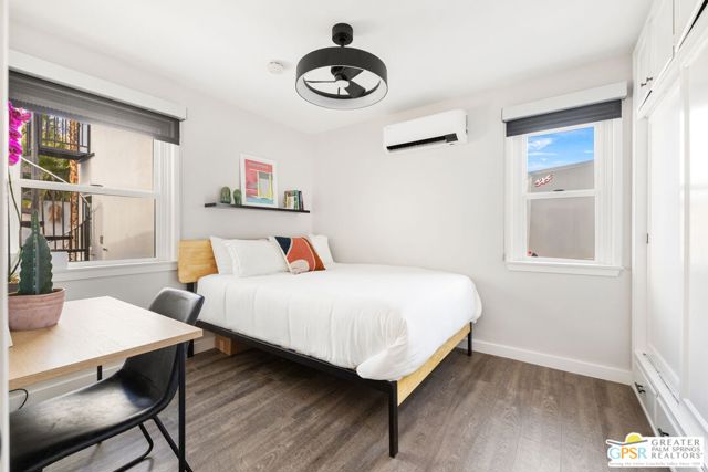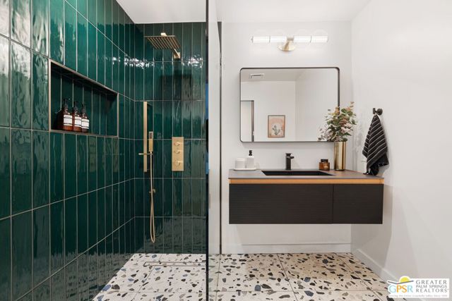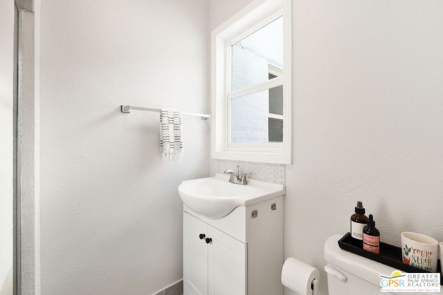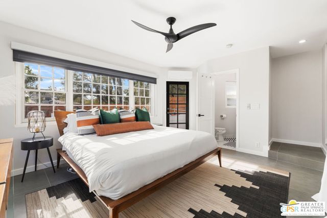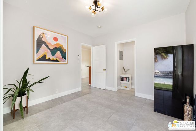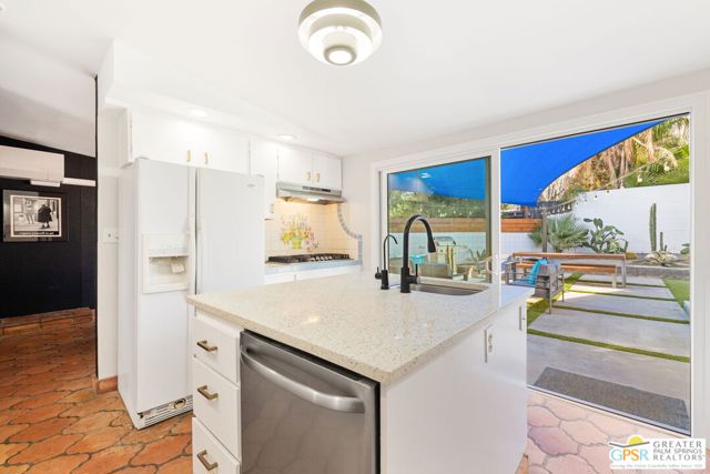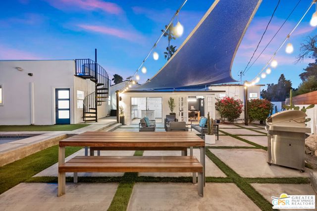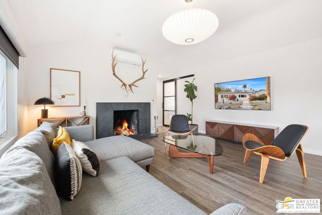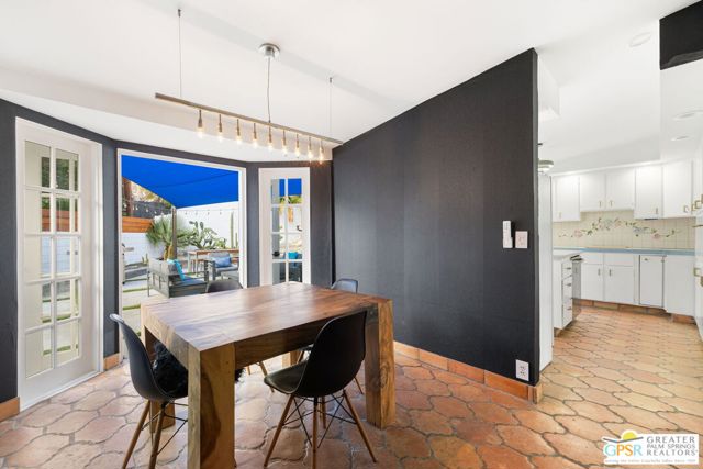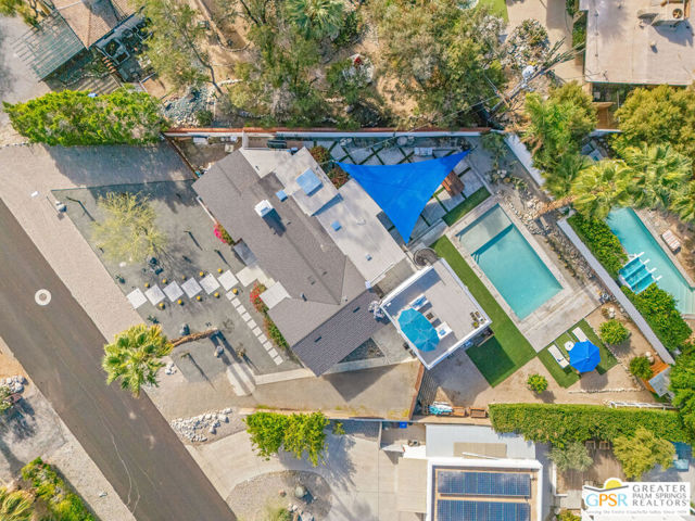 1940s ranch style living in Chino Canyon with sweeping mountain views and a true sense of place, all set within an exceptionally private setting. Nearly one third acre on a quiet street with an elevated approach creates a striking first impression, framed by swaying palms and dramatic desert peaks. 4 bedrooms and 3 baths including a substantial detached casita and excellent separation of bedrooms throughout. Thoughtful updates and freshly painted interior enhance the home's classic character, complemented by a newer HVAC system for year round comfort. Fee Land (you own it) and currently eligible for the city's SHORT TERM RENTAL permit add flexibility for full time, seasonal, or investment use. Big views of Little Tuscany, Chino Canyon, and surrounding mountains unfold from the rooftop deck, especially magical at sunset. A modernist breeze block detail sets the tone as you enter the living room featuring vaulted ceilings and a focal point fireplace. The kitchen with island and adjacent dining area open directly to the saltwater pool and patio, creating effortless indoor outdoor flow and multiple conversation areas. A commercial grade sunshade extends over the patio for comfortable outdoor living, while a whole house water treatment system and reverse osmosis system in the kitchen add an extra layer of quality and convenience. The bright primary suite offers large windows and direct access to the side yard and patio, while Guest Bedrooms 2 and 3 are positioned on the opposite end of the home for privacy. The casita delivers its own living area, kitchenette with breakfast bar, separate bedroom and bath, plus both front and rear doors with easy access to the pool. Low maintenance desert landscaping with lemon, lime, and grapefruit trees pairs beautifully with the setting. You'll enjoy close proximity to Uptown Palm Springs and coveted neighborhoods including Little Tuscany and Vista Las Palmas. Once home to Hollywood actor Tom Neal, best known for his role in Detour, this property captures the enduring spirit of Palm Springs golden era living.