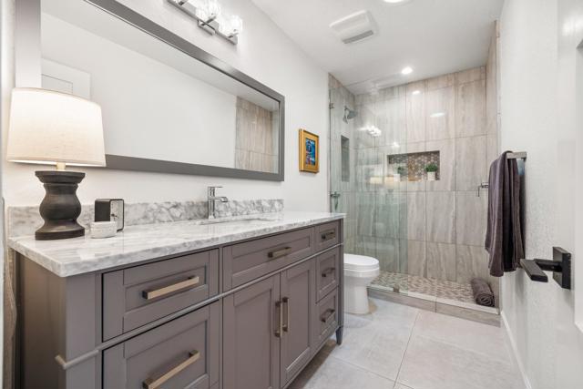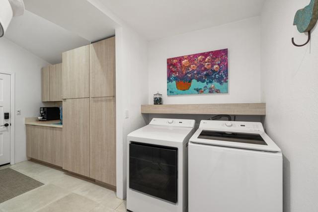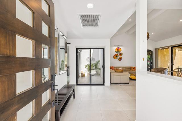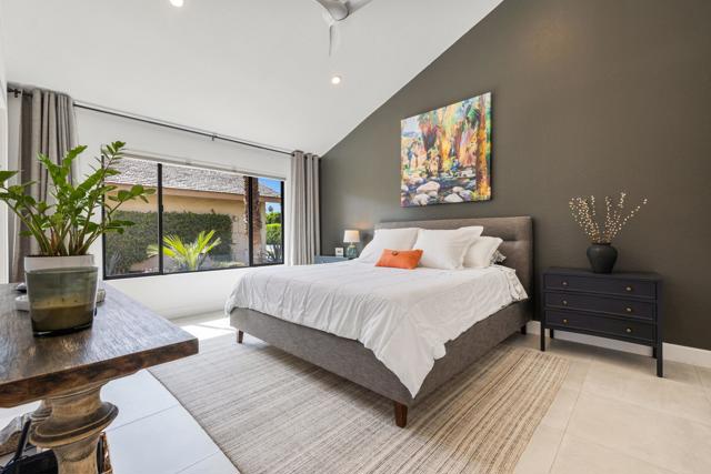 Overlooking the award-winning Ted Robinson designed golf course, this elevated, south-facing 2-bedroom, 2-bath home with a den offers sweeping golf and mountain views and has been fully remodeled from top to bottom. The open floor plan features large-format porcelain tile throughout, high-end appliances, custom cabinetry, custom interior doors, renovated bathrooms, and all new windows and sliders. Additional upgrades include a brand-new HVAC system, upgraded water heater, window treatments, and an oversized laundry room with incredible amount of storage. This home is truly move-in ready and designed for effortless desert living. Step outside to a generously sized, fenced-in patio, complete with a retractable awning, perfect for entertaining guests or relaxing while enjoying the desert lifestyle. Ideally located in the heart of the Coachella Valley, Monterey Country Club is just minutes from premier dining, shopping, and entertainment. Community amenities include a clubhouse, fitness center, 27 holes of Ted Robinson-designed golf, 6 tennis courts, 33 pickleball courts, 4 lane bocce ball court, and 37 pools and spas.