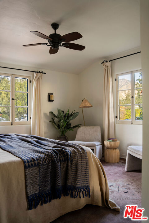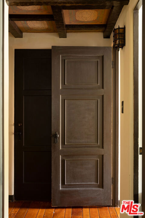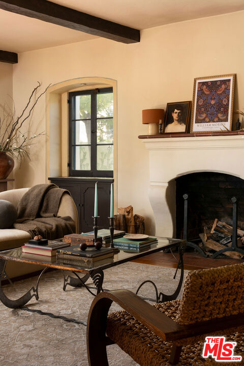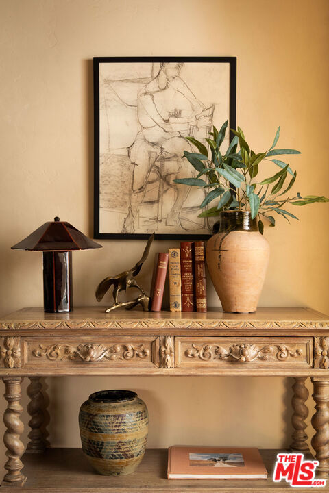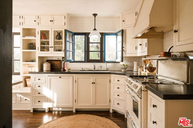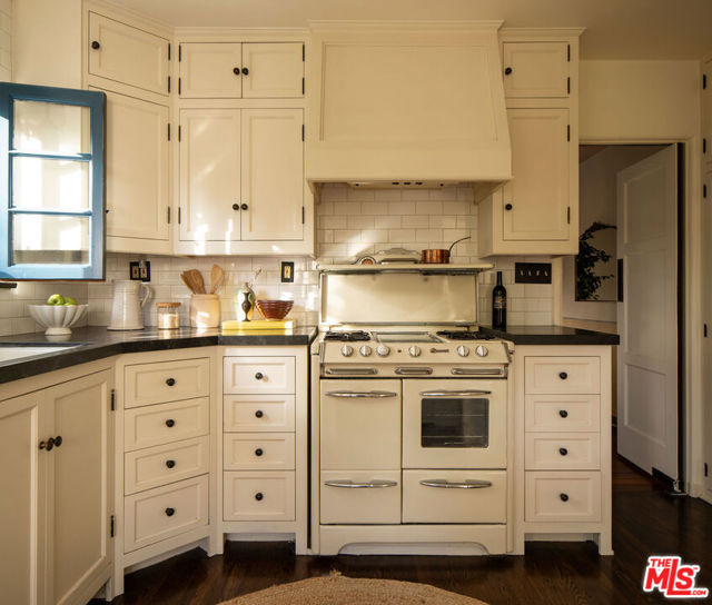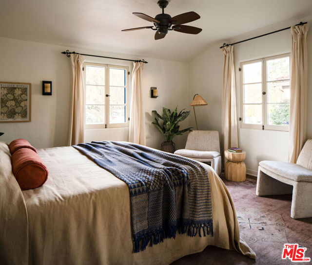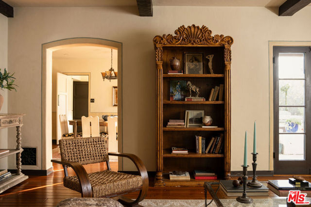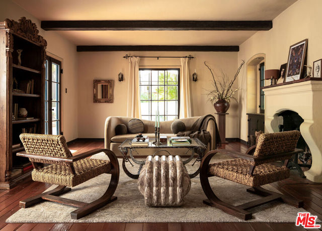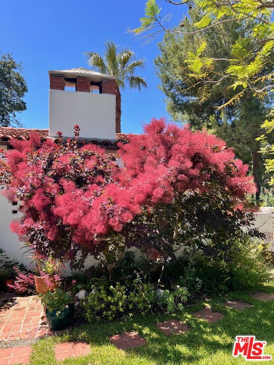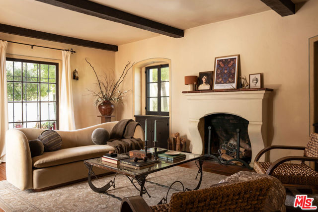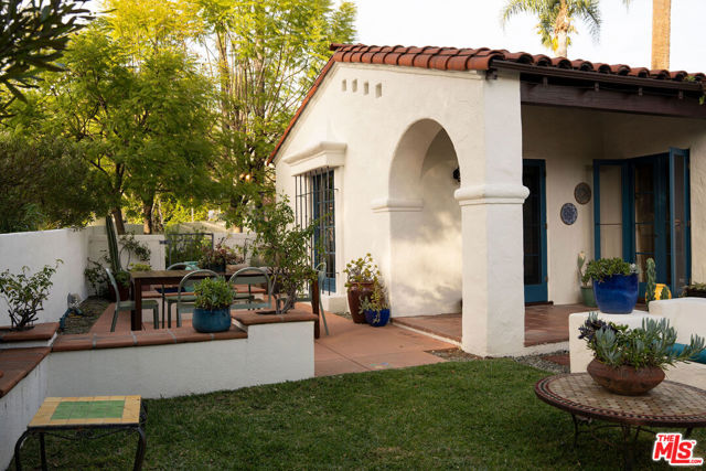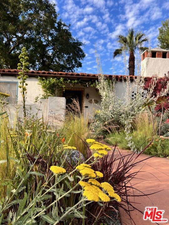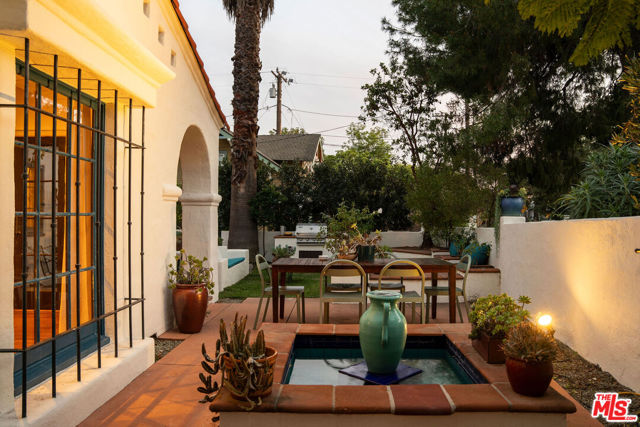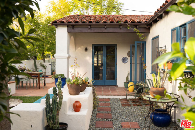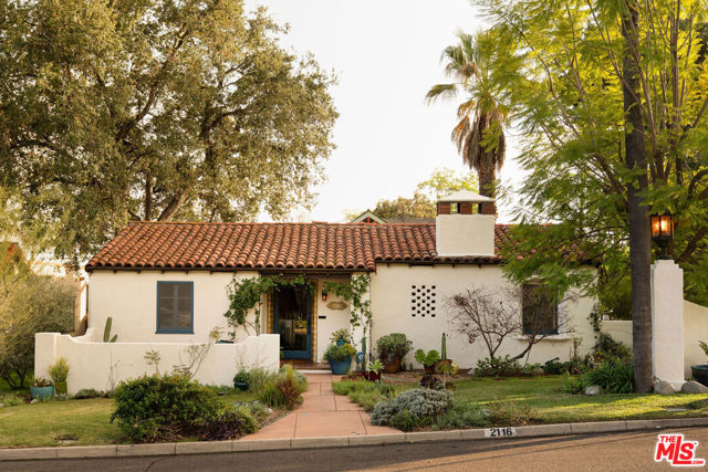 :: The Bower House, 1933 :: Builder Vincent Savory :: Built during the early and romantic development of Northeast Pasadena's first origins of homeownership after the area was a prominent ranch, 2116 Layton remains a rare, intact staple of the architectural soul of Pasadena. Overlooked by the gorgeous Eaton Canyon foothills, the home sits at the entrance of a unique historic enclave, which is marked by two towering lanterns original to the tract. The Bower House is a celebration of early Pasadena craftsmanship, a romantic fusion of classic Spanish Revival artistry and decades of meticulous restoration and caretaking. The bright living room features original peg-and-groove mahogany floors , hand-hewn ceiling beams, a plaster fireplace, and custom built-ins trimmed with Malibu tile. Original windows bathe the space in light and frame serene mountain views. A generous dining room, crowned by a vintage chandelier, leads to a large, period-correct updated kitchen and second eating / breakfast area, thoughtfully revamped to seamlessly complement the historic characteristics of the property. The space offers an unusual amount of storage behind vintage style cabinetry, Caesarstone counters, mahogany floors throughout the majority of the home, white oak flooring in the kitchen and a vintage O'Keefe & Merritt oven. A thoughtful and convenient separate laundry area finishes the space to be ideal for modern living. A long hallway with built-in desk and period cabinetry showcases additional hand-hewn beams and detailed hand-painted ceilings. The hall is flanked by a time-capsule of Art Deco color: A jade-and-yellow original bathroom with honeycomb flooring, a "shark-fin" shower, classic zig-zag wall tile designs with a charming tulip border; a rarity even for its time. Three graciously sized bedrooms, one with an additional Deco-style three-quarter bath, allow for multiple uses, including home-office and guest stays. Several distinct outdoor spaces lend to the charm, offering unique spaces to entertain or to escape for a bit of solitude. An intimate interior courtyard evokes a sense of California leisure and features a working fountain, built in BBQ area and custom-built seating throughout. Several additional distinct outdoor spaces lend to the charm, offering unique spaces to entertain or to escape for a bit of solitude. With the location's picturesque, mountainous backdrop, the exterior has been a favorite space for friends and family to gather for events. Additional upgrades include plumbing, electrical, lush drought-tolerant landscaping, and newer appliances throughout. The Bower House is not merely a residence, but a living piece of Pasadena's architectural heritage and an enduring statement of elegance, craftsmanship, and place.