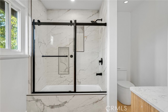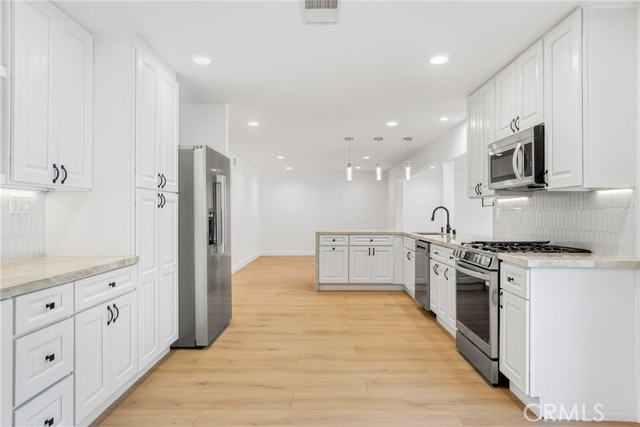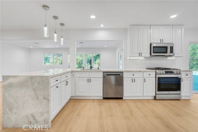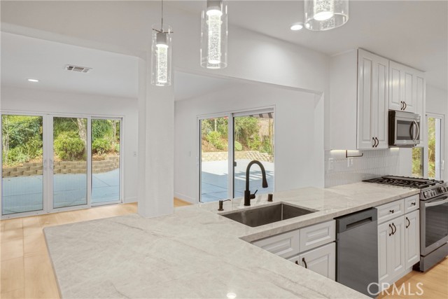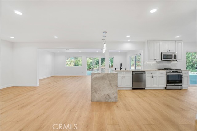 Beautifully remodeled and truly move in ready, this stunning Agoura Hills home offers almost 2,800 sq ft of thoughtfully designed living space on an 8,176 sq ft lot. Showcasing modern upgrades throughout, the home features an open and airy floor plan filled with natural light, high ceilings, and stylish contemporary finishes. The fully remodeled kitchen serves as the centerpiece of the home, featuring elegant cabinetry, quartz countertops, stainless steel appliances, designer lighting, and a spacious peninsula ideal for entertaining and everyday living. The kitchen flows seamlessly into the main living and dining areas, creating a warm and inviting atmosphere. The versatile floor plan includes four spacious bedrooms and three beautifully updated bathrooms, including a highly desirable first floor bedroom with a full bathroom, perfect for guests, extended family, or a private home office. Upstairs offers generously sized bedrooms and an open loft style area ideal for a workspace, study zone, or additional lounge space. The primary suite provides a peaceful retreat with ample space and updated finishes. The backyard is designed for indoor outdoor living and features a large patio area with pergola, perfect for entertaining, relaxing, or enjoying Southern California evenings. Additional highlights include recessed lighting, modern fixtures, updated spa style bathrooms, and a spacious three car garage. This turnkey home combines modern comfort, functionality, and an exceptional location in one of Agoura Hills most desirable neighborhoods.