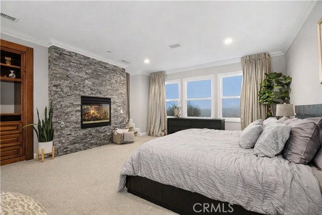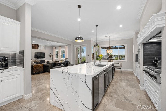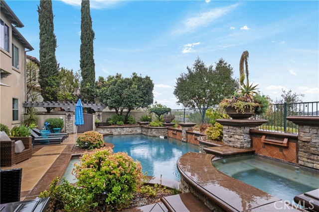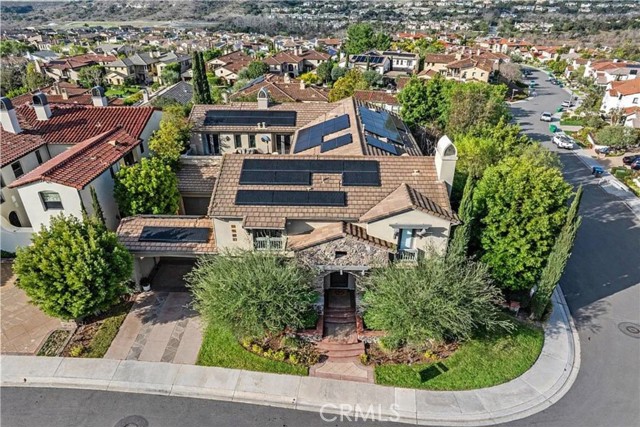 Nestled in the finest location within the prestigious, guard-gated community of Coto de Caza—Orange County’s premier enclave of luxury estates, rolling hills, privacy, and world-class amenities—this exquisite, turnkey residence offers unparalleled sophistication and effortless living. Spanning over 6,000 square feet on a generous 12,000+ square foot lot along a serene single-loaded street, this home commands breathtaking panoramic views: dramatic sunrises from the front and amazing sunsets over the private backyard. High ceilings and abundant natural light flood the open, flowing interiors, where an executive office impresses with custom built-ins perfect for productivity or quiet reflection. The heart of the home is the recently updated chef’s kitchen, featuring a striking quartz island, decorator backsplash, expansive walk-in pantry, and a butler’s pantry equipped with new ice maker and wine refrigerator—seamlessly adjoining a comfortable family room that gazes out to the resort-style backyard. Step outside to your private paradise: a sparkling pool and spa with cascading waterfall features, an outdoor kitchen, a cozy living area, and a fireplace create the ultimate year-round retreat for entertaining or unwinding under the stars. Smart home technology integrates throughout for effortless control, while energy efficiency shines with a fully owned Tesla solar system paired with three Powerwalls, delivering significant monthly credits and sustainable luxury. Upstairs, the grand primary suite is a true sanctuary, boasting a stone fireplace, private retreat, and serene views. Three additional secondary bedrooms encircle a versatile bonus room complete with built-ins, ample storage, and a balcony capturing those sweeping vistas. Downstairs, a generously appointed bedroom with a tastefully renovated en-suite bath offers ideal guest or multigenerational accommodations. This rare offering combines timeless elegance, modern conveniences, and an enviable lifestyle in one of Southern California’s most sought-after communities. Don’t miss the opportunity to experience this exceptional property—schedule your private tour today and discover why discerning buyers choose Coto de Caza for extraordinary living.