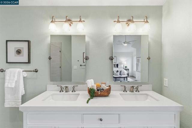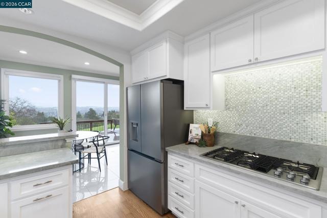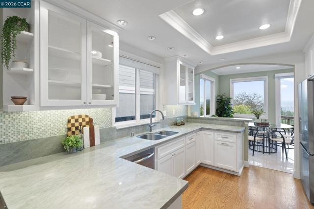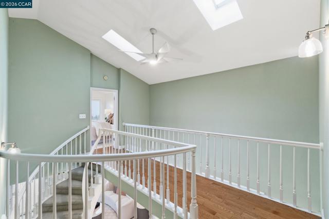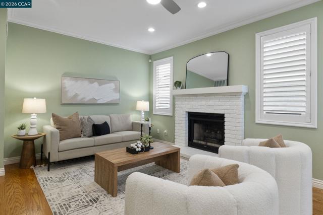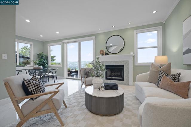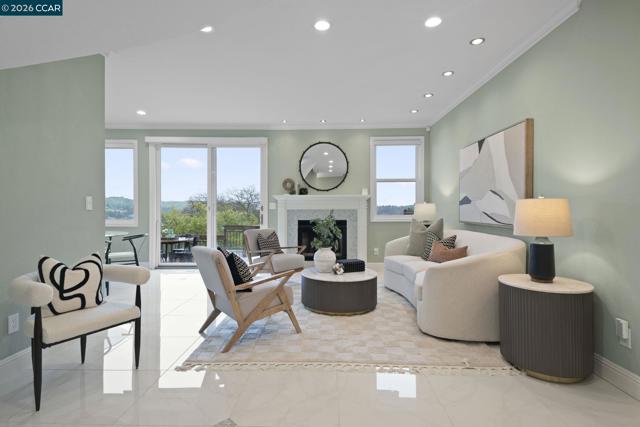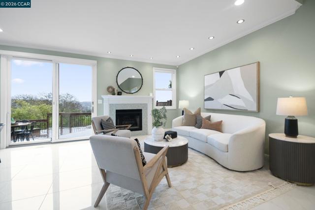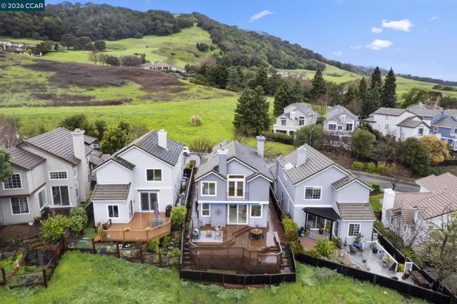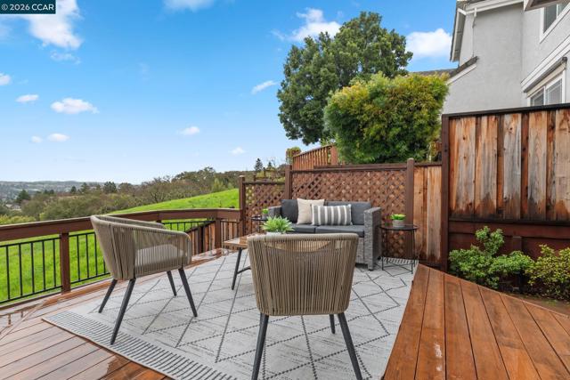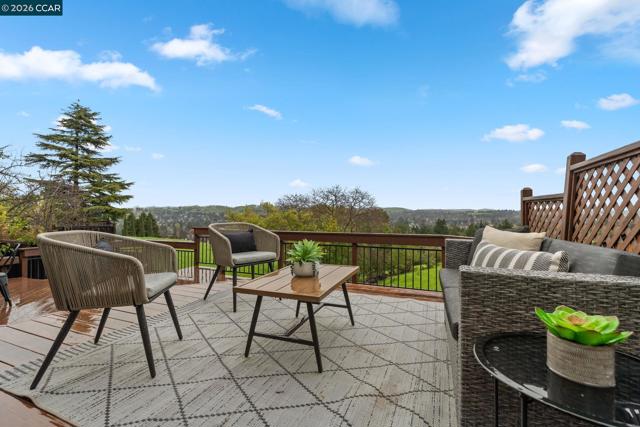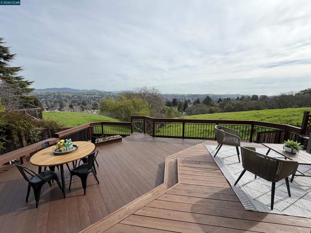 Perched atop Fountain Springs Circle, is a serene hillside retreat with breathtaking VIEWS of Mt. Diablo & the surrounding valley. Backing to open space with no rear or front neighbors, this home offers exceptional privacy & tranquility. A private courtyard welcomes you with charming brick pathways, while expansive wood decking creates an ideal setting for entertaining, relaxing & enjoying stunning vistas & starry nights. The open floor plan is filled with light & sophistication, featuring high ceilings, a floating staircase, walls of glass & seamless indoor-outdoor living. Stunning VIEWS from most rooms! Hardwood floors, designer porcelain tile & quartzite finishes elevate the space. Remodeled kitchen shines with SS appliances, quality cabinetry, designer backsplash, quartzite slabs & wine cooler. Recent upgrades include remodeled bathrooms, custom window coverings, dual-pane windows, upgraded lighting, ceiling fans & a retractable patio awning. Two cozy fireplaces in the living & family rooms. The primary suite offers a private balcony, spa-like bath & walk-in closet. Additional bedrooms provide flexibility, including a spacious suite that can be easily reconfigured. This exceptional home blends comfort, elegance, and natural beauty! Garage w/epoxy floors and custom cabinets.
