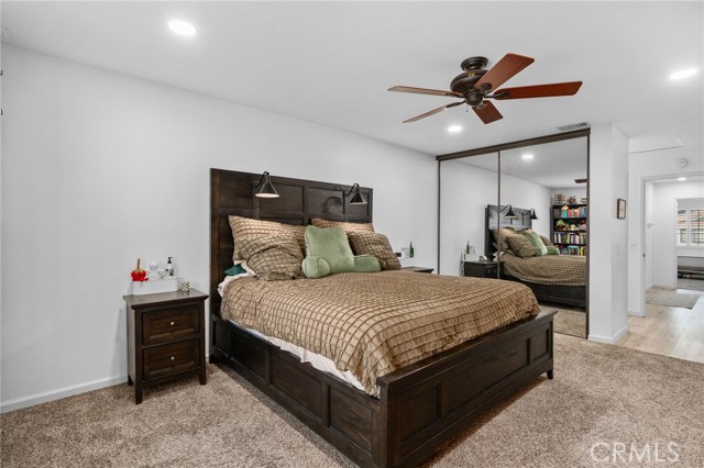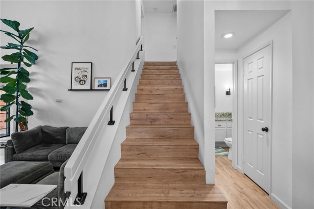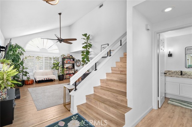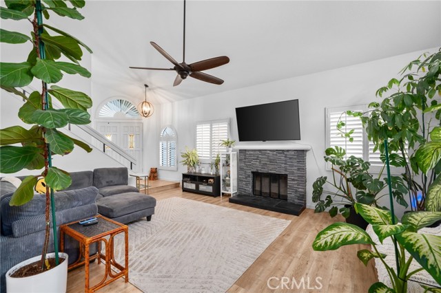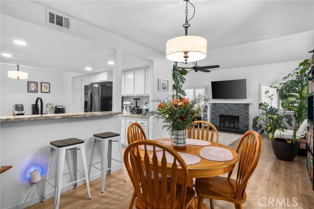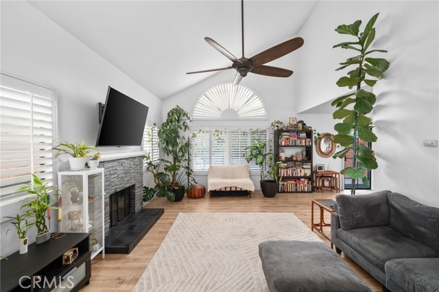 Charming corner-lot home with beautiful curb appeal and lush, well-maintained landscaping, ideally located in a desirable Riverside community. This inviting residence welcomes you with a grand double-door entry, soaring vaulted ceilings, and a bright, airy interior enhanced by plantation shutters, ceiling fans, and abundant natural light throughout. The spacious family room features a cozy fireplace and flows seamlessly into the kitchen and breakfast nook, creating a comfortable setting for both everyday living and entertaining. Sliding glass doors open to a low-maintenance backyard with two concrete patios, perfect for relaxing, hosting gatherings, or enjoying Southern California evenings. The kitchen offers ample cabinetry and convenient direct access to the garage, while a main-floor powder bathroom adds functionality for guests. Upstairs, the primary suite provides a peaceful retreat with plantation shutters, ceiling fan, and an en-suite bathroom complete with dual sinks and linen storage. Two additional bedrooms and a full bathroom complete the upper level, offering comfortable space for family, guests, or a home office setup. Situated on a desirable corner lot just steps from oversized guest parking, this home is part of a community that features a fenced pool and spa for residents to enjoy, as well as RV/Trailer parking. Conveniently located near local parks, shopping centers, dining options, and everyday essentials, with easy access to major commuter routes including the 91 Freeway. The property is also located near Polytechnic High School and other well-rated Riverside Unified schools. Offering comfort, natural light, and a prime location close to everything Riverside has to offer, this is a wonderful opportunity to own a bright and welcoming home in an established neighborhood.