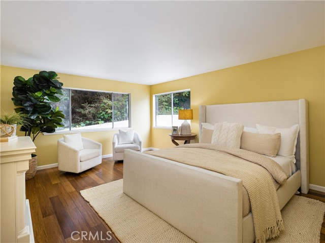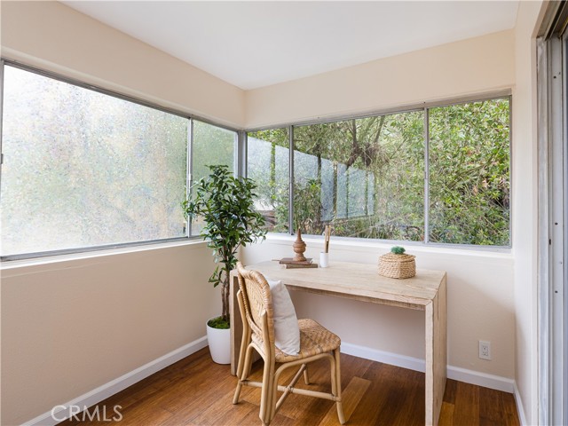 Discover the elegance of living at 5700 Ravenspur Drive, Unit 107, in the serene landscape of Rancho Palos Verdes. This 1,770-square-foot residence offers an inviting blend of style and comfort, featuring 3 spacious bedrooms and 1.75 elegantly designed bathrooms. The sophisticated interiors showcase the high ceilings, recess lighting, custom cabinetry, and natural light from an array of large windows catering to a modern lifestyle. The spacious living area opens to an enclosed patio -- perfect for an office, study area, or workout space. Engineered hardwood floors are found throughout the home. The kitchen is lined with updated cabinetry, stainless-steel appliances, and granite countertops with a peninsula, which is a great place for breakfast. A dining area can be found in the kitchen or off the living room. The large primary bedroom has an electric fireplace, double custom closets, ensuite bathroom along with a built-in cabinet for the highly coveted in-unit laundry. One of a few units in the building with an electric washer/dryer hookup. No need to use the communal laundry. Residents can enjoy a wealth of luxurious amenities, including a communal pool and spa for relaxation. The secured 33-unit building ensures convenience with an elevator and laundry facilities on each floor, while two assigned side-by-side parking spots in a gated garage offer ease for your commuting needs. This one-level condominium is a sanctuary of tranquility with the garden views, perfectly capturing the essence of upscale living. It's located near shopping centers, restaurants, and award-winning Peninsula schools.