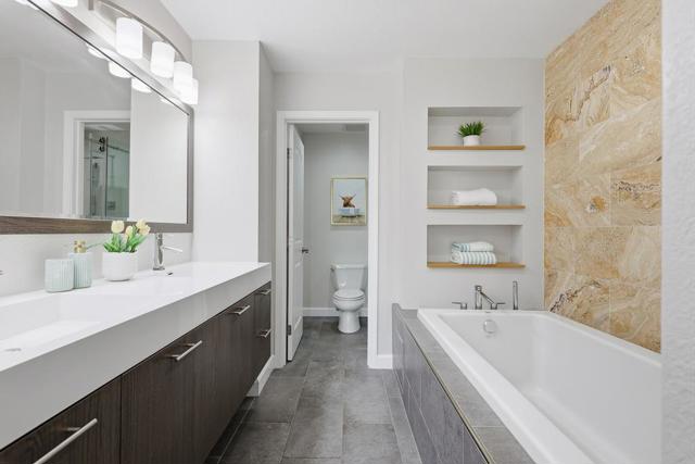Rarely available beautifully updated single-family in highly sought-after Ardenwood community. Built in 1988, this thoughtfully designed 4BD/2.5BA end-unit offers a larger lot and no shared walls for added privacy. Bright living room with soaring vaulted ceiling and great natural lights. Open-concept kitchen features quartz countertops,soft-close cabinetry, quality appliances, and abundant storage, flowing seamlessly into the dining area and backyard. Spacious primary bedroom with vaulted ceiling overlooks the customized "Rose Garden". Primary bath includes double-sink floating vanity, luxuary soaking tub, and separate shower. Step outside to your own curated backyard oasisa customized "Rose Garden" with an irrigation system, water fountain feature, flower beds, and solar lighting. With a wide variety of roses throughout the yard, this space is perfect for relaxation. Updated flooring, dual-pane windows/doors, newer garage door, newer water heater, and RO water filter. Side-by-side 2-car garage with driveway parking and ample guest parking.Top-rated schools with TEST SCORE 10 (buyer to verify): Forest Park Elementary, Thornton Middle, American High. Minutes to Ardenwood Historic Farm, Hwy 84 (Dumbarton Bridge), and I-880. Easy commute to major companies-Meta/Google/Tesla/Lucid!