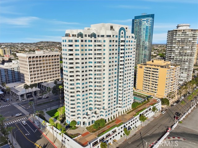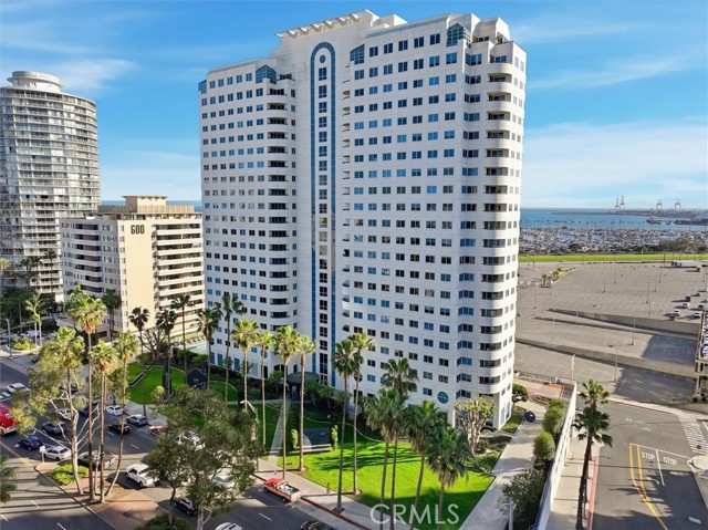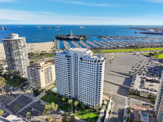 Welcome to Harbor Place Tower, a premier luxury high-rise in the vibrant heart of Downtown Long Beach. This beautiful 2-bedroom, 2-bath residence offers an elevated coastal lifestyle with sweeping ocean views, exceptional amenities, and an unbeatable location with a front row seat to the Long Beach Grand Prix!! As you enter, you are welcomed by the bright, open-concept floor plan designed for effortless living and entertaining. The spacious living and dining areas are filled with natural light and showcase stunning views of the Pacific and the iconic Queen Mary. A private balcony provides the perfect setting to unwind and enjoy the ocean breeze. The kitchen is thoughtfully appointed with plenty of cabinetry, stainless-steel appliances, and a convenient breakfast bar for casual dining. The expansive primary suite is a true retreat, featuring dual mirrored closets, and a spa-inspired ensuite bath complete with a soaking tub, separate shower, and dual-sink vanity. A versatile second bedroom with custom office-style built-ins, an additional bath, in-unit laundry, and two tandem parking spaces. Residents of Harbor Place Tower enjoy resort-caliber amenities, including a sparkling pool and spa, outdoor fireplace lounge, built-in BBQs, promenade deck, fully equipped fitness center, sauna, and 24/7 security with lobby attendant. Ideally situated near the Long Beach Convention & Entertainment Center, the The Pike Outlets, Shoreline Village, miles of waterfront bike paths, acclaimed dining, boutique shopping, the beach, Metro access, and major freeways - this is luxury coastal living at its finest.
