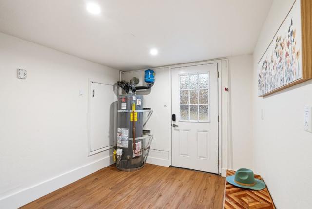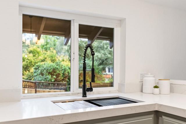 Located in one of Scotts Valleys most desirable neighborhoods, this extensively remodeled 2 story home offers 1,942 sqft of living on a private 17,424 sqft lot. The layout provides space for everyone and everything, whether relaxing in private, hosting friends, or enjoying time with family. Entry level offers 3 beds, 2 baths, dining area, & a kitchen featuring new quartz countertops, new sink & faucet, new cooktop, oven & microwave, new hardware, & refinished cabinets. The primary suite, 2 additional bedrooms, and hall bathroom are thoughtfully arranged on one side of the home for privacy and convenience, & a flexible bedroom/office space at the front of the house. Downstairs, the spacious living room boasts soaring ceilings & a cozy fireplace with large windows & a sliding door showcasing the surrounding scenery & providing easy access to the backyard. Off of the living room is a laundry room & versatile flex space for a mudroom, home office, or additional storage. Surrounded by nature, the oversized backyard feels like a private retreat, offering both functionality and tranquility with a generous patio, ideal for entertaining or relaxing. Located near HWY 17, this home provides easy access to Santa Cruz and Silicon Valley, while offering a peaceful retreat for family life.