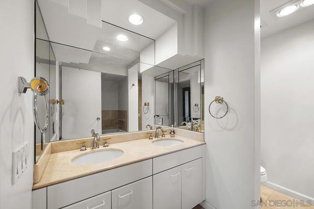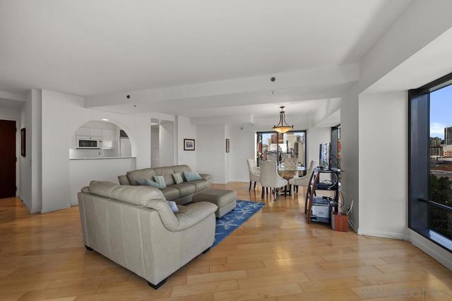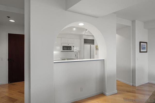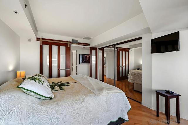 From your private balcony at Harbor Club, one of downtown San Diego's most sought-after addresses, you'll enjoy views of the Convention Center, the city skyline, and the building's lush tropical gardens and pool below. This is the kind of home that draws you in the moment you walk through the door. Sunlight pours through walls of windows, warming the hardwood floors and filling the open living space with an effortless glow. It's the kind of room where a quiet dinner at home feels just as special as a night out. And with the Gaslamp Quarter, the Marina, and Petco Park all just steps away, you'll have plenty of both. The kitchen keeps you part of the conversation while you cook, with clean white surfaces that make everything feel fresh and simple. When the day winds down, the primary suite becomes your own private escape with sliding glass doors open to the balcony, and the en-suite bath with a travertine walk-in shower and deep soaking tub. Living at Harbor Club means having the best of downtown San Diego right at your doorstep, with the feeling of a true retreat waiting for you every time you come home. Residents of the Harbor Club are treated to an array of lavish, resort-inspired amenities that encompass a round-the-clock front desk service, a state-of-the-art gymnasium, an exquisite pool deck, a sociable club room, and a versatile library/business center, among numerous other perks. Nestled in the much-coveted Marina District, the Harbor Club boasts unparalleled ease in traversing the neighborhood on foot, granting effortless access to an array of transportation options, delectable dining establishments, retail therapy, the iconic ballpark, the pulsating Gaslamp Quarter, the artsy East Village, and the scenic Embarcadero – an idyllic setting for serene walks alongside the bay.
