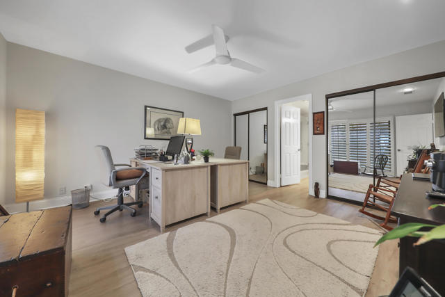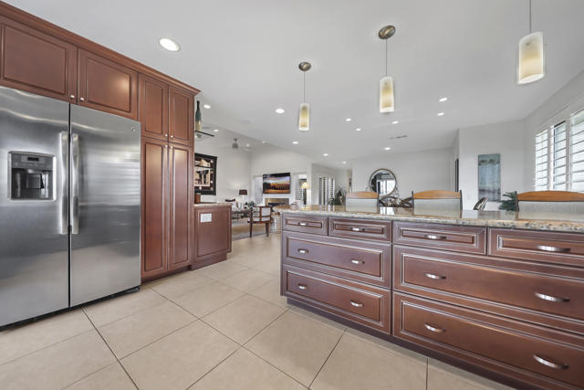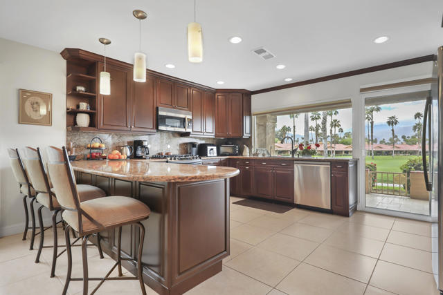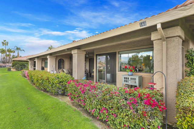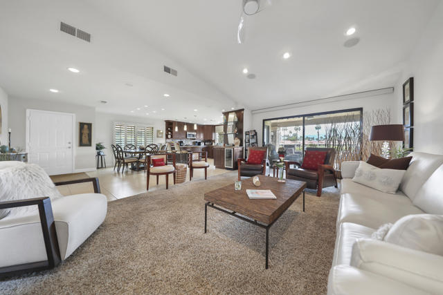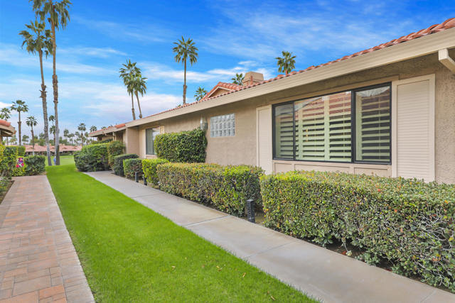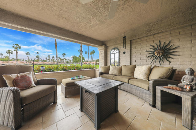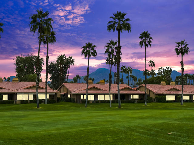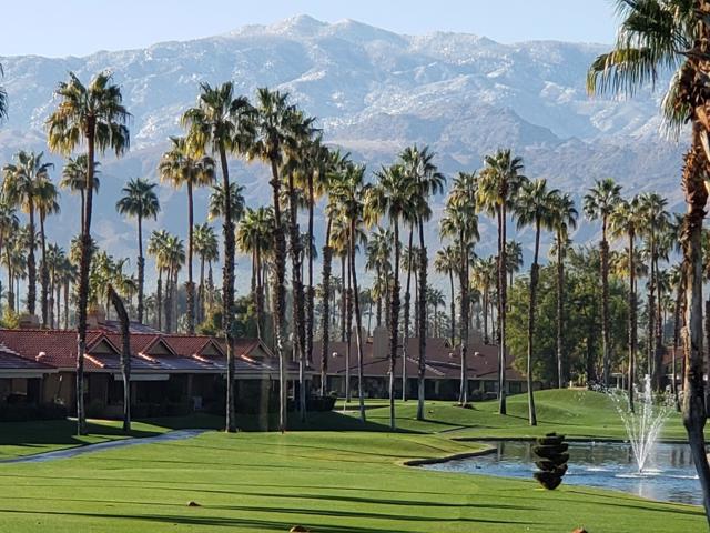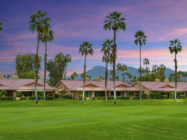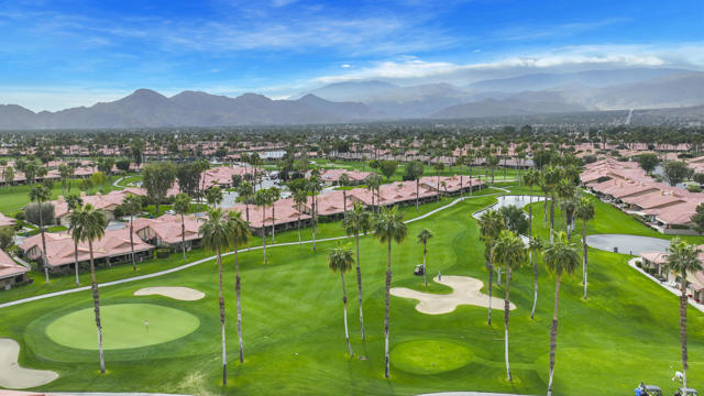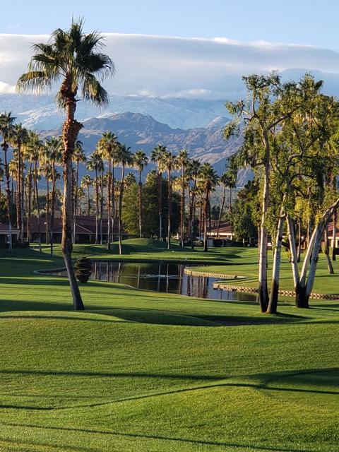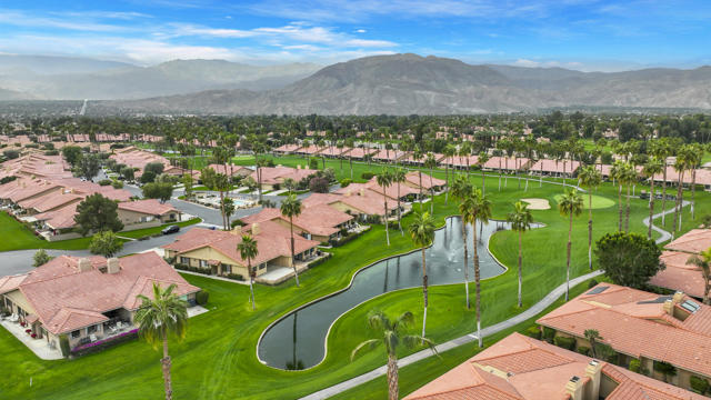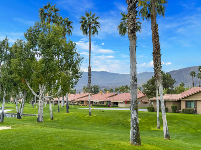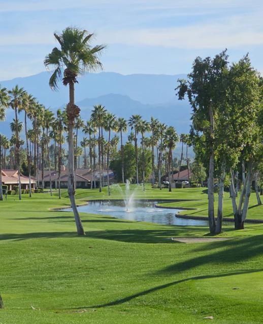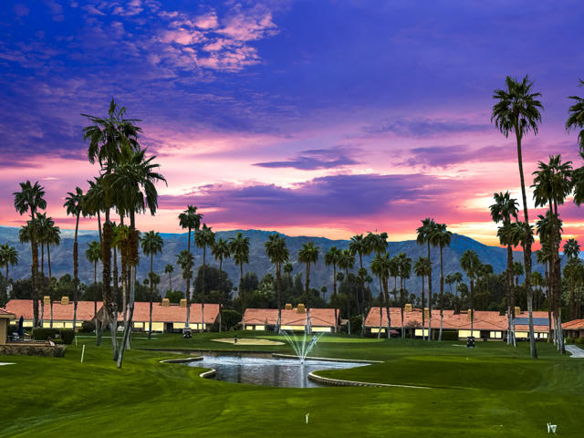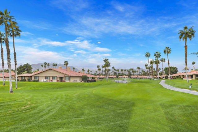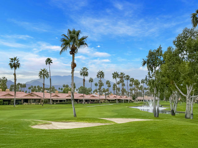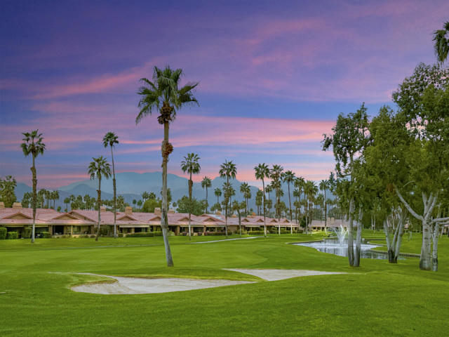 This great home is undoubtedly THE BEST VIEW and LOCATION in Chaparral Country Club! This stunning 3 bedroom, 3 bath residence offers luxury desert living with breathtaking views in every direction! Enjoy VIEWS, VIEWS and MORE VIEWS of the SOUTH FACING palm tree lined 18 hole golF course, sparkling lake and fountain along with sweeping 180-degree mountain vistas. With over 2000 square feet of beautifully designed living space, this home delivers comfort, elegance and resort-style living at its finest. The spacious primary suite features a walk in closet and a luxurious ensuite bath with jetted tub, separate stall shower, dual sinks and granite countertops. An additional bedroom also includes an ensuite bath and the third bedroom (currently used as an office) overlooks an open top atrium that brings in abundant light and fresh air creating a bright, peaceful atmosphere! The Gourmet kitchen is equipped with Granite Countertops, Stainless Steel Appliances Pull Out Shelving and a large Picture Window that perfectly frames the spectacular golf course scenery. Natural light fills the home through multiple skylights, complementing the elegant plantation shutters and quality flooring throughout! Step outside to the fully covered tiled patio--ideal for relaxing, entertaining, and taking in the serene desert landscape year round. Community amenities include 21 pools, 2 tennis courts, 16 pickleball courts, dining room, fitness center and golf creating a true resort-style lifestyle. Perfect as a full time residence or a vacation retreat, this exceptional home offers the best of desert living in a premier country club setting! YOU WILL LOVE IT!!!!!