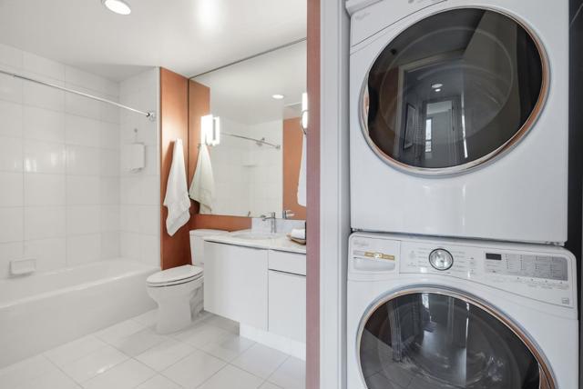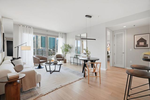 Experience panoramic views, refined design, and effortless waterfront living in this newly renovated upper-floor residence at The Brannan in San Franciscos coveted South Beach/Embarcadero enclave. With prized west northwest exposure and elevated ceilings, dramatic floor-to-ceiling windows frame sweeping vistas of the downtown skyline, the illuminated Bay Bridge, and the Bay without the fishbowl effect of neighboring towers. Curated interiors feature wide-plank European oak hardwood floors, a chefs kitchen with built-in Sub-Zero refrigeration and Bosch dishwasher, a generous bedroom with walk-in closet, in-unit front-loading washer and dryer, recessed lighting, and a spa-inspired bath with deep soaking tub. Premium construction and soundproofing provide exceptional privacy and tranquility. A deeded parking space with dedicated EV charger is steps from the elevator. One block from the Embarcadero and South Beach Marina, and moments to Oracle Park, Chase Center, the Ferry Building, the Financial District, dining, theaters, and major transit. Residents enjoy a 3,000-square-foot fitness center, palm-lined pool and spa, 24/7 concierge, on-site management, secure bike storage, and an elegant motor court. An exceptional primary residence or luxury pied-a-terre.