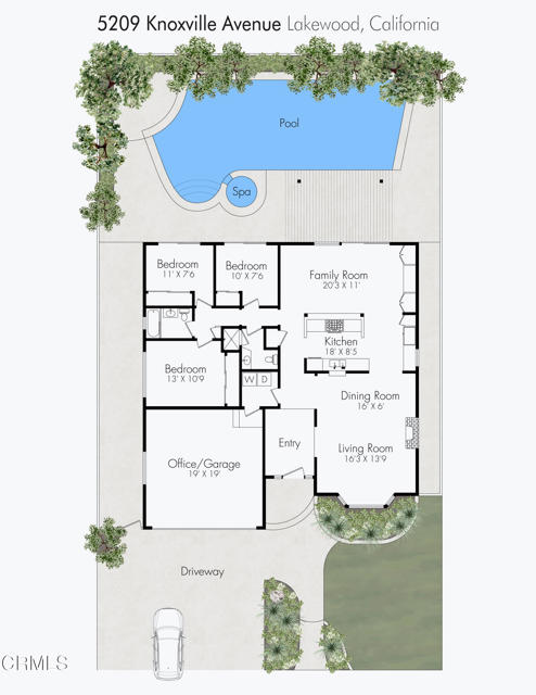 Welcome to this prime Lakewood home in pristine condition and in a fantastic location. The formal skylit entry leads you to the open living and dining room with a bay window, fireplace, and wood flooring. The adjacent kitchen with an extra long island is completely open to the separate family room which boasts vaulted ceilings and skylights. The updated kitchen has a built-in SubZero refrigerator, recessed lighting, 6-burner Viking stove, a dishwasher, a built-in microwave and wall oven, a built-in desk/coffee station, and ample storage. The family room has a custom-built entertainment center with even more storage and a triple wide glass slider leading to the backyard covered patio. The attached garage is finished with cabinetry and counter space, currently a studio that can serve as a workspace, hobby room, or additional storage. The bedrooms all have brand new carpeting and custom shutters, two of which lead to the backyard with glass sliders. Both bathrooms have been completely updated and there's a separate laundry room with cabinets. The entertainer's backyard offers a covered patio, pool, spa, and stone paver patio with multiple seating areas and lush, mature landscaping. Close to shopping, parks, schools, restaurants and more, this quality home has it all!