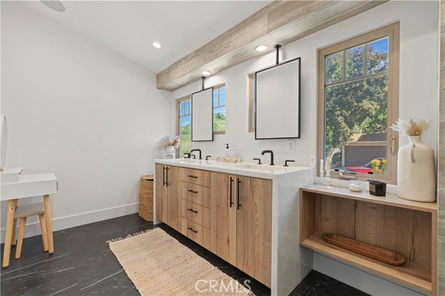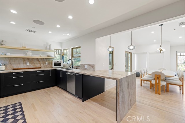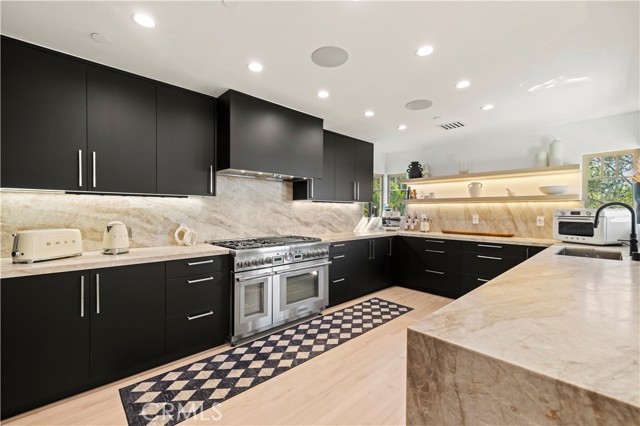 Quietly tucked away on an idyllic cul-de-sac in the hills of Tujunga, this Entirely reimagined and thoughtfully redesigned 3,600sqft 3BD/3BA with an additional 1BD/1BA Guest Unit showcases refined luxury and meticulous craftsmanship throughout. The main home offers an open, light-filled layout anchored by a designer chef’s kitchen with Thermador Appliances, highlighting imported stone surfaces, custom cabinetry, and a striking wine glass display accent. The oversized Master Suite is spacious and features high ceilings along with a large walk-in closet. Every detail has been carefully curated, blending elevated finishes with modern functionality. Natural light envelops nearly every corner of the interior, most notably in the living and bedroom areas. The rear grounds offer a harmonious mix of both hardscape and landscape, complimented by tranquil mountain views. The private 1BD/1BA guest unit offers many uses and includes its own separate entrance and full kitchen, ideal for extended family or guests. Here’s your opportunity to own a turnkey home offering versatility, sophistication, and timeless design.
