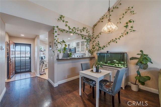 Nestled within the private, gated community of Wellington Landing, this exquisite 1875 West Falmouth unit (#48) offers a rare blend of privacy and sophisticated design. As a premier upstairs residence, the home boasts breathtaking, unobstructed views from both the front windows and back windows and balcony, creating an atmosphere of serenity and openness. The entry opens to a bright, airy floor plan defined by soaring high ceilings and an abundance of natural light streaming through several strategically placed skylights. The heart of the home is a spacious kitchen featuring plentiful cabinetry, a pantry, and a charming breakfast nook, all flowing seamlessly into the main living area via a convenient eat-in bar and formal dining space. The living room serves as a perfect retreat, anchored by a beautifully remodeled fireplace and sliding doors that lead to a large, private balcony. For added convenience, the balcony includes a dedicated private laundry room. Both bedrooms are generously sized with ample closet space, complemented by a clean hallway bathroom with a tub/shower combo and a primary suite featuring a modern, remodeled walk-in shower. Built in 1984 and spanning 939 square feet, this two-bedroom, two-bathroom home also includes a two-car detached garage. Residents of this lushly landscaped community enjoy exclusive access to a sparkling pool and the security of a gated entrance.