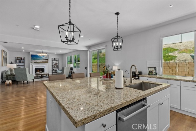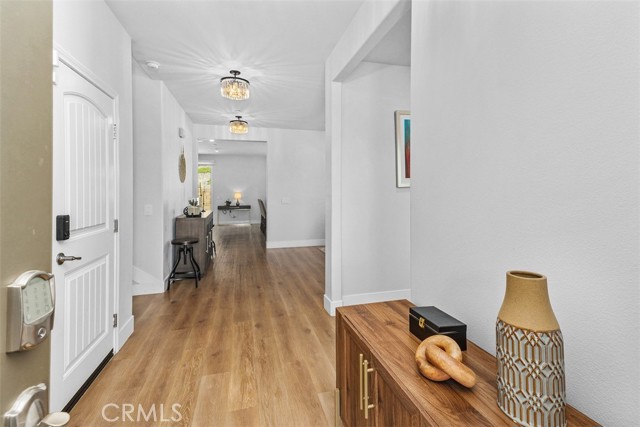 Welcome to this beautifully upgraded 2020 built home offering modern comfort and style in one of Corona’s most desirable communities Sycamore Creek. The gourmet kitchen showcases granite countertops with matching backsplash, an oversized sink, stainless steel appliances, and upgraded cabinetry. Throughout the home, you’ll find, luxury vinyl plank flooring, 5½-inch baseboards, custom remote-controlled roller shades, designer interior and exterior lighting, and smart home features including a Ring doorbell and spotlight cameras. Additional upgrades include kitchen water filtration, a tankless water heater and a Quiet-Cool whole house fan for year-round efficiency as well as a oversized solar system with 37 panels and approximately 14.3 MWh production in 2024 and 15.2 MWh in 2025. The backyard is an entertainer’s dream, featuring wrap-around concrete, low-maintenance artificial turf, custom retaining walls, slope and privacy. Both front and rear yards are beautifully landscaped for stunning curb appeal. Perfectly situated near freeways, shopping, parks, walking trails, and restaurants, this home is part of a community that boasts the California Distinguished Award–Winning Todd Elementary School, walking distance to Deleo Sports Park. Residents also enjoy close proximity to the community clubhouse, water park, and multiple pools.