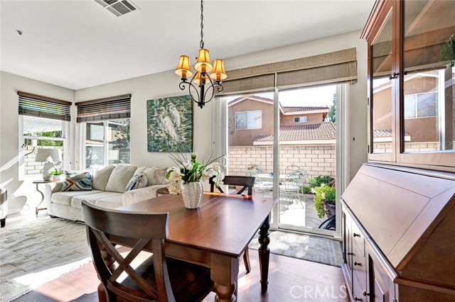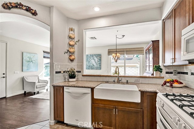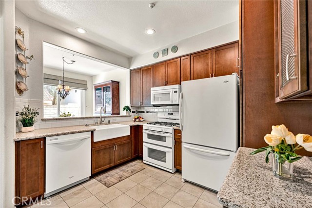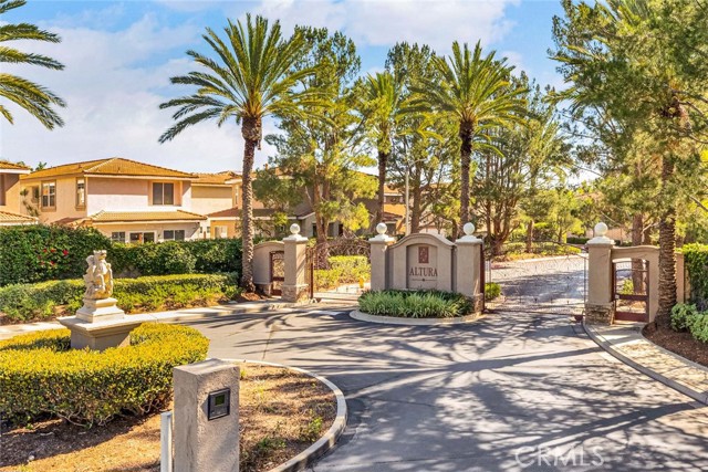 Beautifully updated & remodeled,this detached Residence offers no shared walls and is ideally situated on a quiet interior tract w/in the highly sought-after gated community of Altura.With low HOA dues & a resort-style setting,residents enjoy access to a sparkling pool,relaxing spa,clubhouse,fitness center,& recently upgraded high-speed fiber optic internet—all w/in a well-maintained,family-friendly neighborhood conveniently located across the street from Champions Sports Complex.Enter thru a private gate,you’re welcomed into a true gardener’s paradise featuring plumeria trees,succulents,vibrant rose garden w/ brick inlays,& a beautifully designed,extra-large patio perfect for entertaining.The backyard offers privacy and creates a tranquil garden oasis.Step through the beautiful front door into a spacious living room anchored by a large built-in fireplace w/ media niche.Features include laminate flooring,recessed lighting,wood window blinds,dual-pane vinyl windows,extra-tall baseboards,& a nice flow into the formal dining room w/ chandelier & glass vinyl slider providing direct access to the patio.The showpiece kitchen is extensively upgraded w/ granite countertops,hardwood cabinetry including glass-faced cabinets,easy-close drawers,Lazy Susan,spice rack pull-out,large pantry w/ multiple pull-outs,& designer tile backsplash.A Kohler white farm sink w/ upgraded faucet,Kenmore 4-burner range w/ extra broiler,Whirlpool microwave & dishwasher,Maytag refrigerator,recessed lighting, & direct garage access complete this impressive space.Upstairs, the massive primary suite (14’ x 15’) boasts vaulted ceilings,extra-wide picture windows streaming natural light,high-end translucent Hunter Douglas shades,& a large walk-in closet w/ extensive built-in organizers including shoe racks.The remodeled primary bathroom showcases granite counters,dual sinks w/ upgraded fixtures,dual oval designer mirrors,newer wood vanity,upgraded lighting,& soaking tub & shower featuring designer tiled walls,& shampoo niche.The hallway bathroom is beautifully upgraded w/ granite counters,newer wood vanity,upgraded lighting & fixtures,shower wand,& shower over tub w/ designer tile insets.Newer HVAC system,Newer water heater,Newer LiftMaster garage opener,Two-panel modern doors throughout,Washer & Dryer,Freshly painted exterior,built-in garage cabinetry w/ sliding doorsThis exceptional home offers upgrades at every turn,combining privacy,thoughtful design,& resort-style living—A true gem.