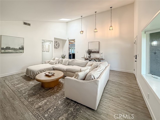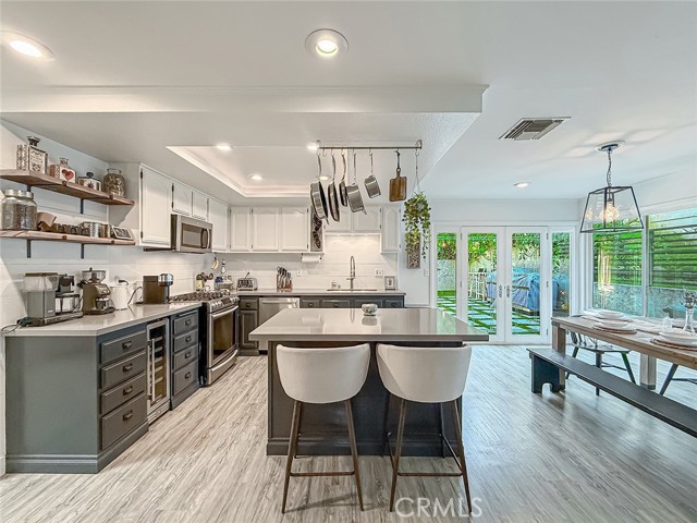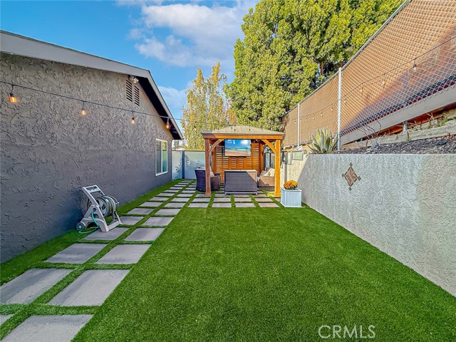 This beautiful recently updated single-story home offers 3 bedrooms and 2 bathrooms, thoughtfully designed for everyday comfort and effortless style. Step inside to a bright, welcoming living room where natural light pours in through a skylight and vaulted ceiling. A custom black-mantled fireplace brings warmth and character, while vinyl plank flooring flows throughout for a clean, modern look. A charming garden window adds a touch of greenery and charm. The recently remodeled kitchen is a highlight—complete with stainless steel appliances (including a wine refrigerator!), Quartz countertops, tray ceiling, and a center island with breakfast bar seating. Plenty of cabinet space makes cooking and gathering easy, and the adjoining dining area overlooks the backyard for seamless indoor-outdoor living. Both bathrooms have been tastefully updated, and the home’s exterior was recently repainted for fresh curb appeal. Energy-conscious buyers will appreciate the leased solar system installed in 2024 and the EV charging setup added in 2025—smart upgrades for both convenience and savings. Step outside to a backyard designed for relaxation and connection, featuring a gazebo and low-maintenance artificial turf—perfect for family meals, weekend gatherings, or quiet evenings under the stars.