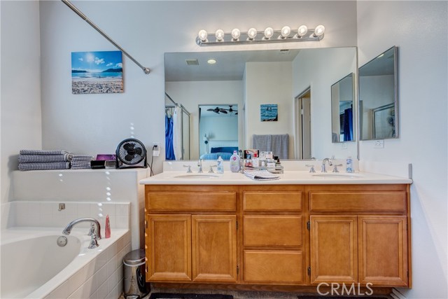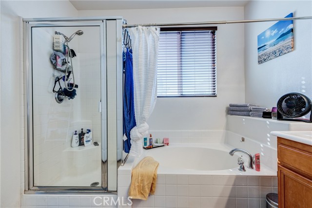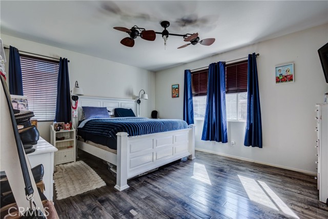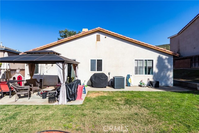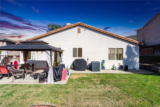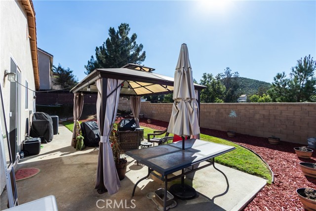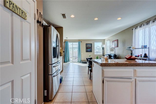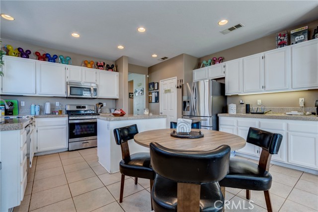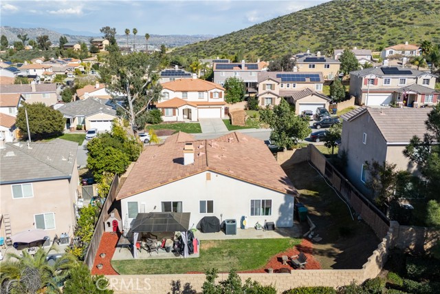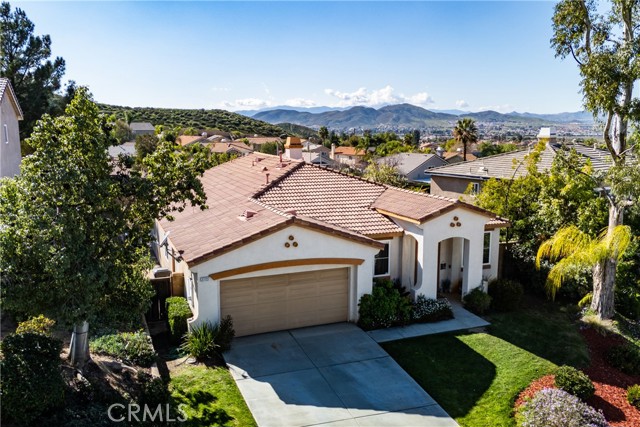 Large 4 bedroom single-story home in Menifee offering almost 2,000 sq ft of beautifully updated living space and enjoys a desirable private yard with picturesque views. The spacious layout featuring tall 9 foot ceilings & recessed lighting seamlessly connects the large living and kitchen areas. Enjoy the modern aesthetic and easy maintenance of LVP plank flooring in bedrooms and stylish tile throughout the home. The well-appointed kitchen features desirable upgrades including granite countertops, a large island, stainless steel appliances, and ample cabinetry for storage. A large primary bedroom provides a tranquil retreat featuring a private en-suite bathroom and very generous walk in closet space. Three additional spacious bedrooms offer versatility for a growing family, guests, or a home office. Step outside to a private backyard oasis, perfect for relaxation and entertaining. The yard features a combination of concrete for entertaining areas, lush grass, and open orientation, creating a serene and functional space. Enjoy total privacy & the beauty of your surroundings with stunning views of the mountains from your private backyard with no home behind! All this and close to parks, excellent schools, Menifee Global Hospital, restaurants & the 215 freeway for easy access to surrounding communities including San Diego beaches & local mountains.